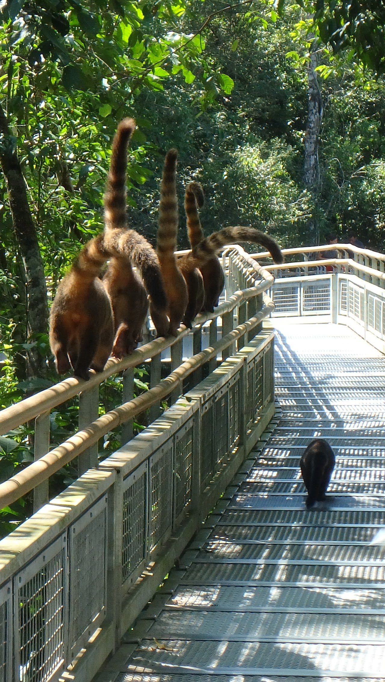 Nous croisons des « coaties », petits animaux curieux très habitués à la présence humaine. De sympathiques araignées, bien installées au milieu de leurs toiles, attendent leurs proies. Une piqûre de l’une d’elle ne doit pas faire de bien !