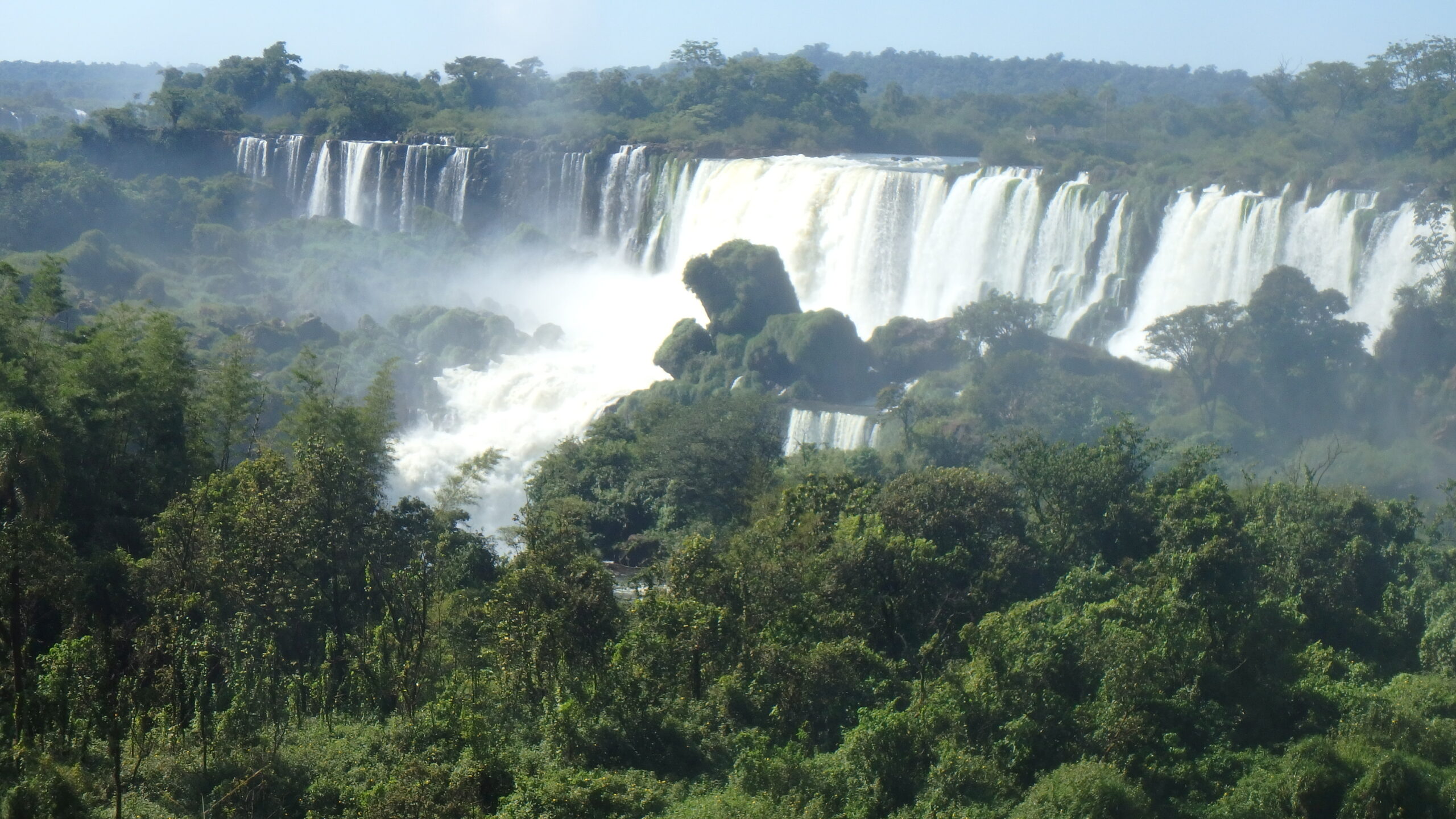 Nous remarquons sur le plan que nous pouvons prendre un bateau pour aller sur l’ile San Martin. Cette ile, placée au milieu des chutes, doit permettre d’avoir un excellent point de vue supplémentaire. Après quelques aller-retour (ce n’est pas très bien indiqué) nous trouvons l’accès à l’embarcadère … fermé ! Pas d’accès à l’ile San martin … Tant pis !
