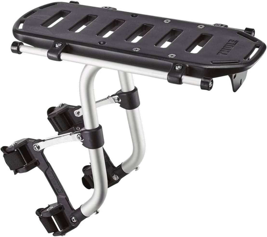 Pour transporter mes bagages, je l’ai équipé d’un porte bagage TULE Pack’n Pedal Tour Rack associé à l’accessoire Pack’n Pedal (les deux vont ensembles, je ne comprends pas pourquoi ils sont vendus séparément). Trés bien adapté aux VTT tout suspendu, Il se monte très facilement sur mon vélo. Le système d’accroche parait solide.