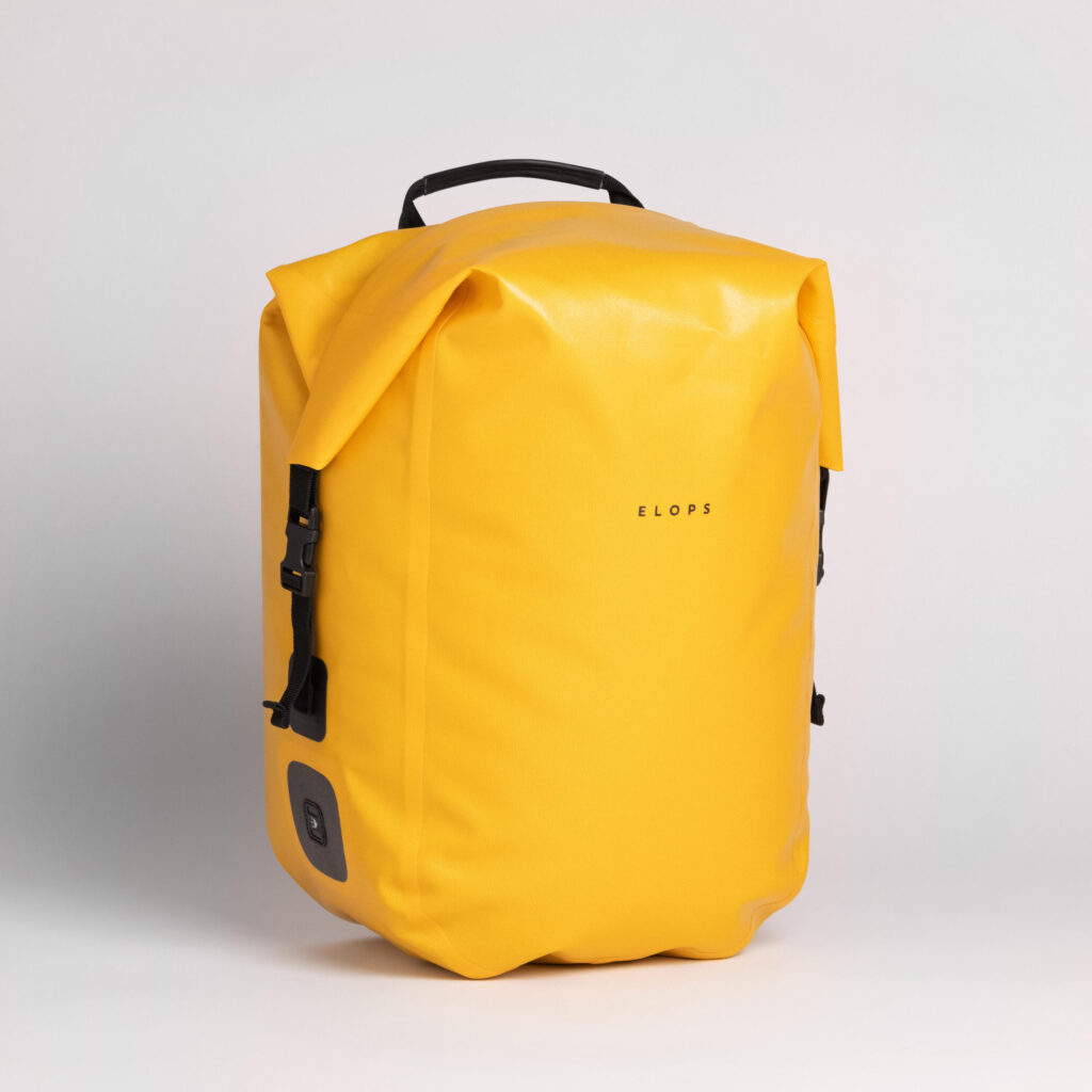 Deux sacoches de 27 litres suffiront j’espère pour mettre mes affaires pour 5 jours. C’est l’été, je n’ai besoin que de T-shirts et de shorts ! J’ai pris les modèles ELOPS 900 en jaune d’or de chez Décathlon. Elles sont imperméables ce qui me permettra de maintenir mes affaires au sec en cas d’orage ! De plus le système de fixation sur le porte bagage me parait solide et pratique.