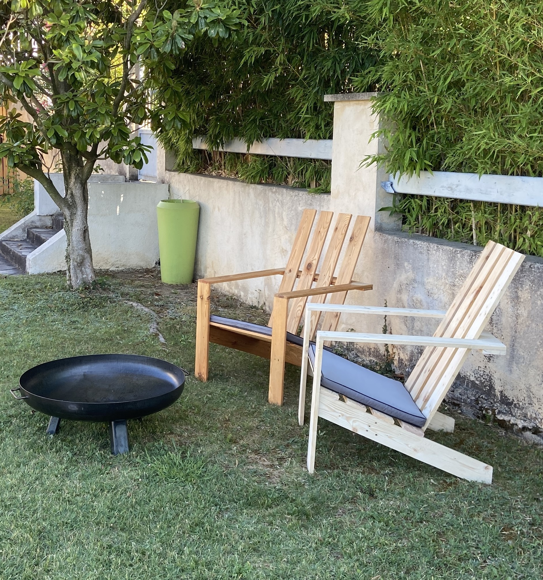 Je récupère des palettes que je démonte pour recycler les planches et en faire des objets ou des meubles. De cette façon, j’ai dessiné et fabriqué une chaise longue de jardin. Je me suis inspiré de modèles glanés sur le net (surtout sur pinterest, bonne source d’inspiration) que j’ai adapté pour pouvoir la construire avec comme seule matière première des planchettes de bois d’environ 20mm d’épaisseur, 95mm de largeur et 1000mm de longueur.