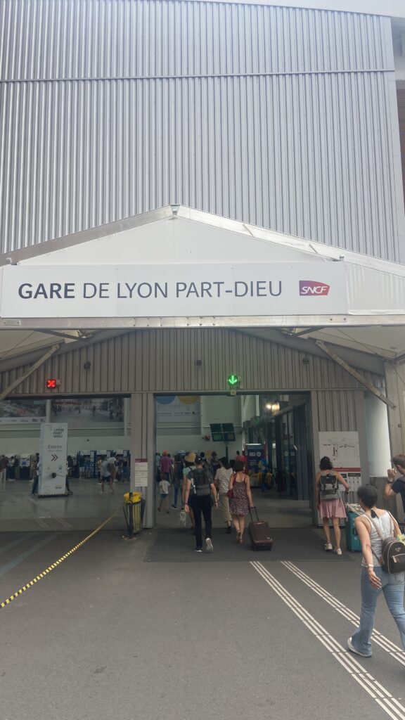 10:00 – Arrivée à la Gare de Lyon part dieu. On a 2 heures d’avance ! Aucune circulation de Marseille à Lyon. On s’installe tranquillement à la terrasse d’un café.
