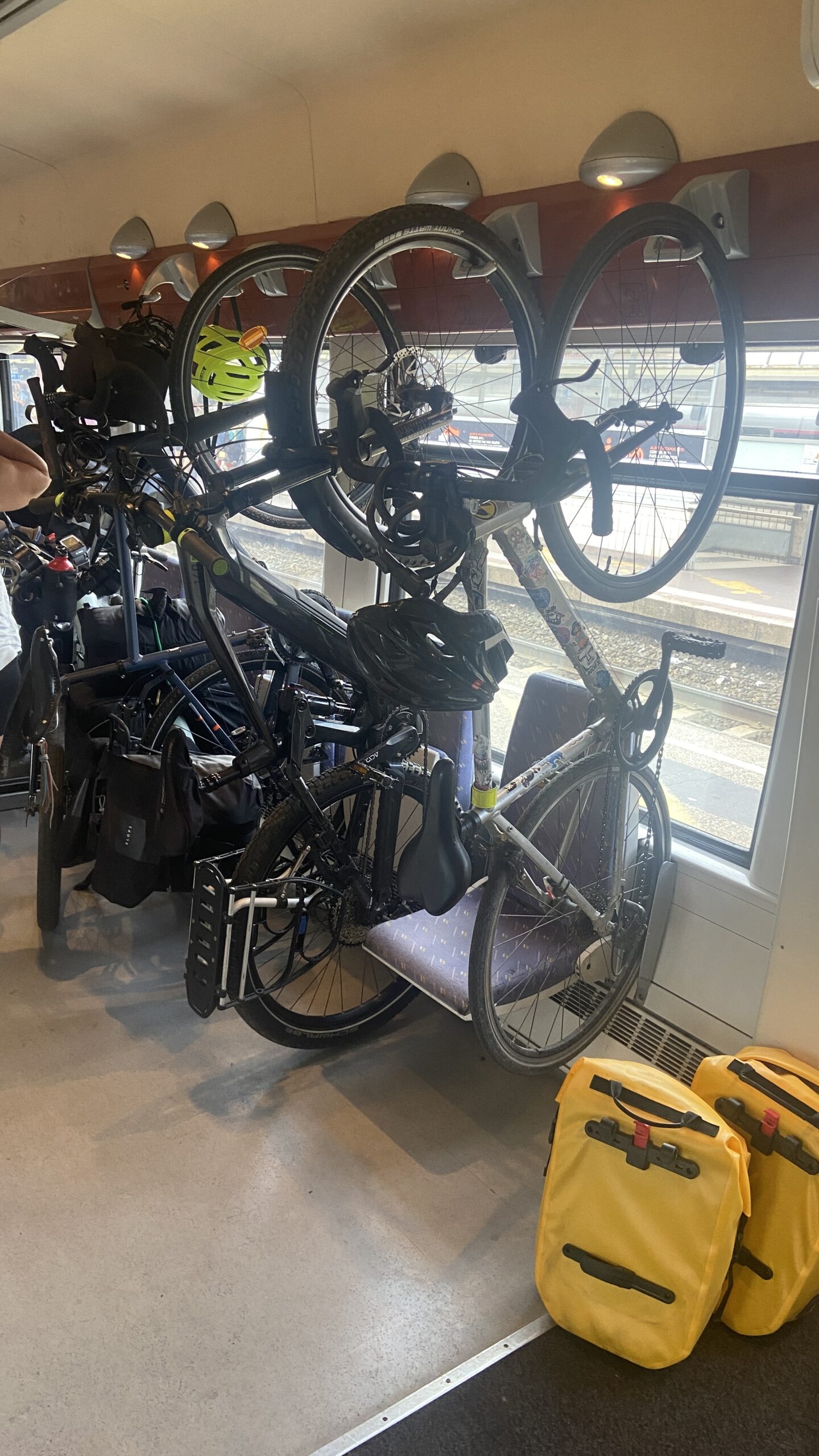 11:50 train annoncé en voie G. C’est parti ! Tout est conçu pour le roulage du vélo. Même l’entrée du TER est au niveau du quai. Ça change du voyage Toulon / Nice qui ressemblait plus à un parcours du combattant !