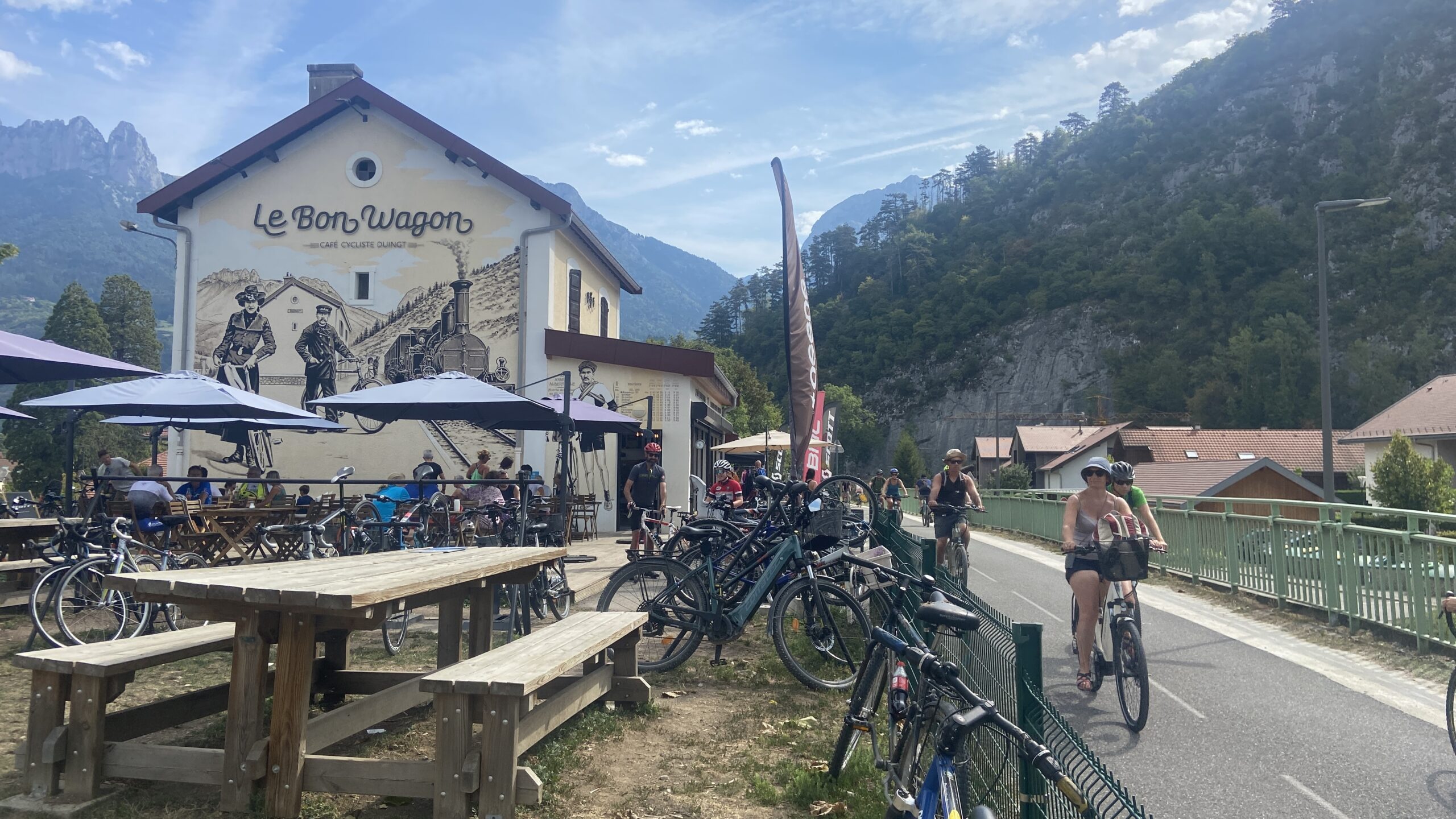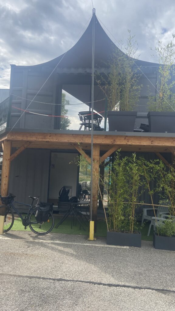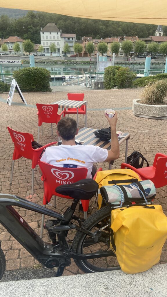Après un bon petit déjeuner au même camping qu’hier (quand c’est bon on y revient !), on quitte notre super container aménagé, direction SEYSSEL, notre point de départ de la Viarhona.