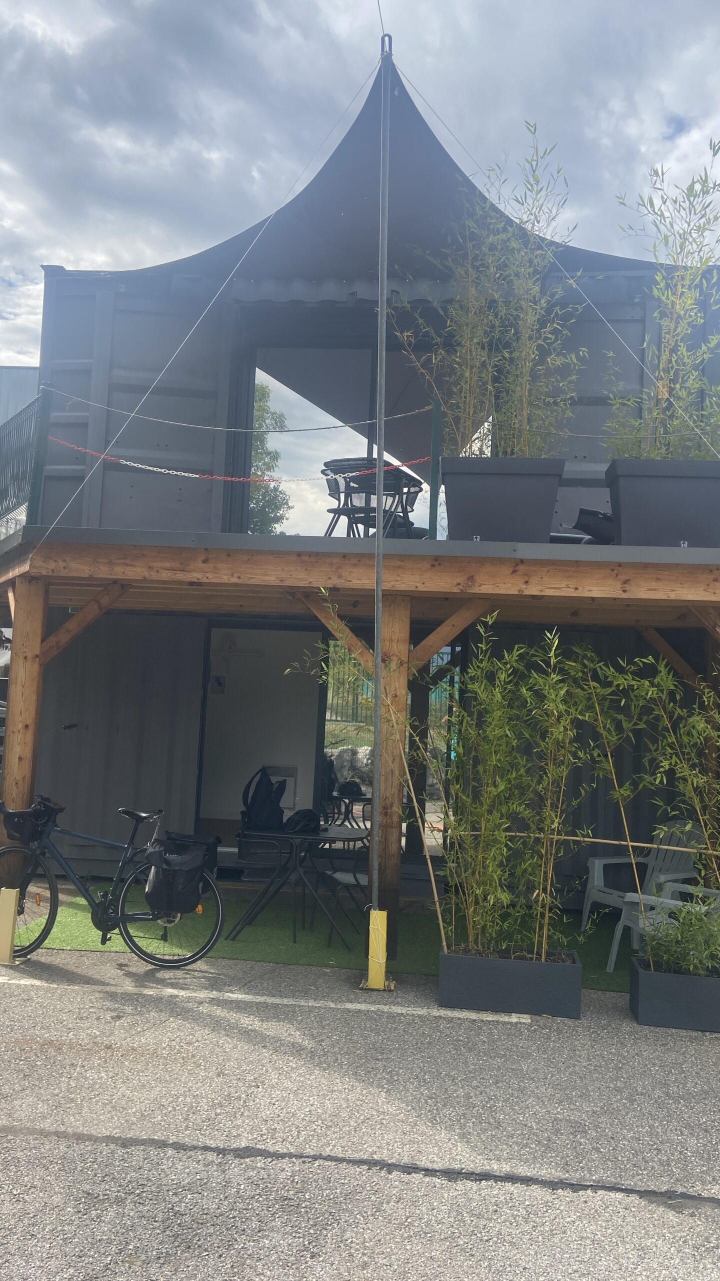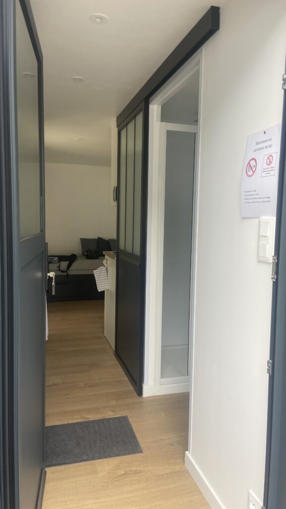Notre logement est … Un container aménagé ! Très bien conçu. Tout y est ! Cuisine, salle de bain, lit … sympa. Pas déçu.