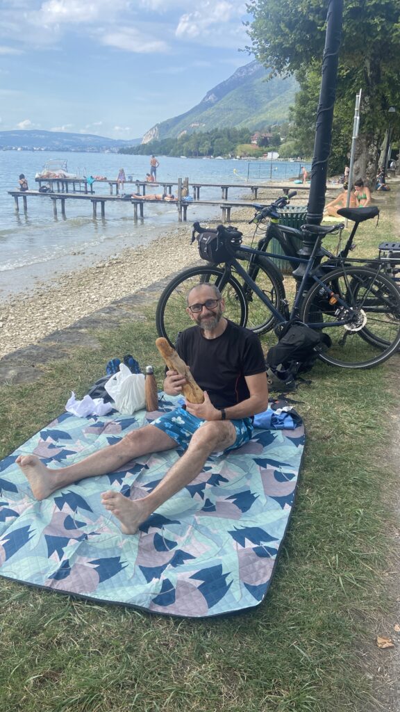 18:15 tour du lac terminé. Les paysages sont superbes. On pose les vélos pour une petite promenade à pied dans Annecy. Les rue piétonnes, les artisans, les maisons typiques, le parc, le pont des amours … Même avec beaucoup de monde, c’ est une ville vraiment sympa.