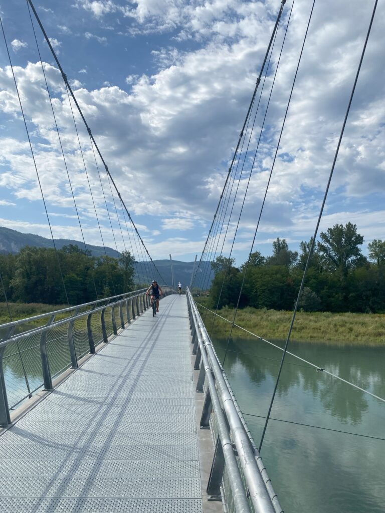 Pour ceux qui ne le savent pas, La ViaRhôna est un itinéraire cyclable de 815 km aux abords du Rhône alternant entre voies vertes sécurisées et voies partagées. Elle relie le lac Léman aux plages de la méditerranée. Elle permet de découvrir à son rythme, les paysages, les villes et villages, les vignobles et la gastronomie qui défilent sur les territoires traversés.