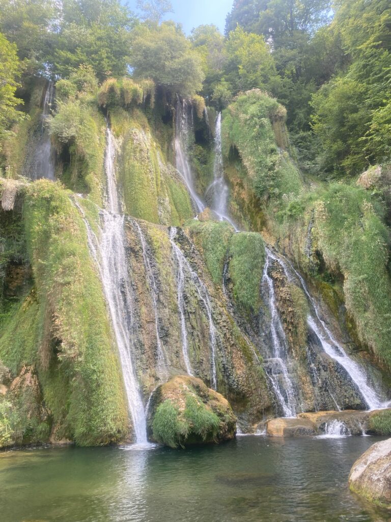 En fin de matinée, nous faisons un petit détour par Glandieu, petit village célèbre pour sa cascade dont l’eau jaillit de plus de 60 m de haut.
