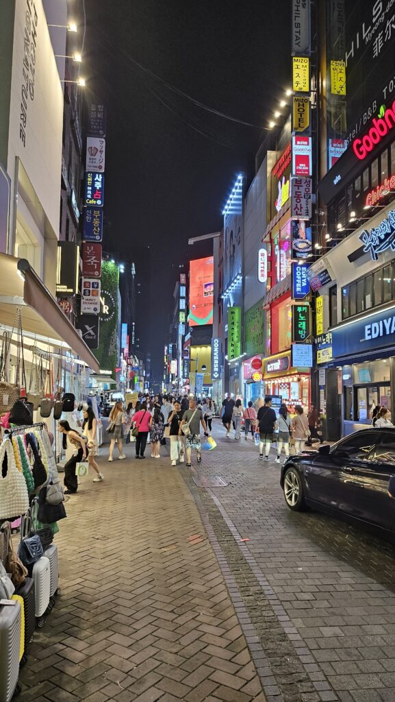 Vers 20h00, nous retournons vers notre logement, dans notre quartier très animé de Myeong Dong pour y dîner. Nos valises doivent arriver … il ne faut pas les louper !