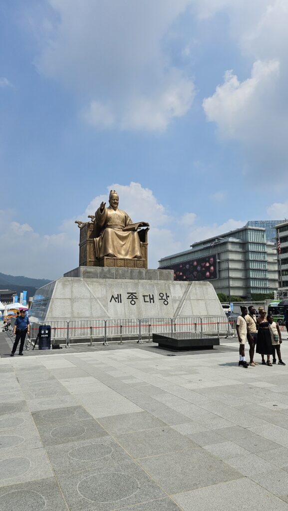 Une fois le palais visité, nous nous dirigeons à pied vers la rue très animée INSADONG. Pour y arriver nous passons par de grandes avenues, de larges allées et des places immenses …