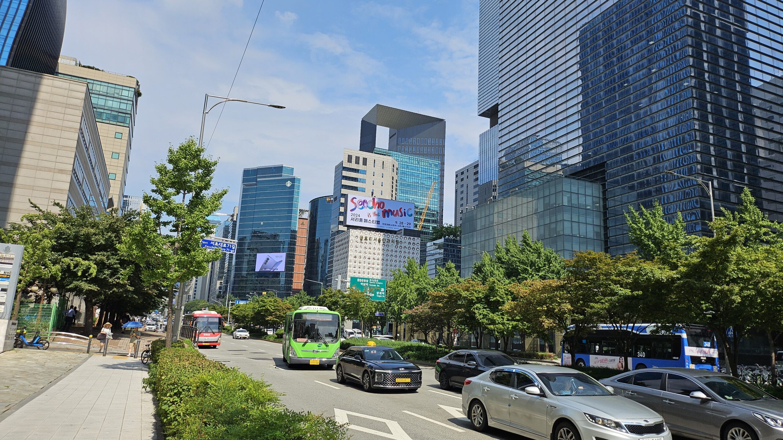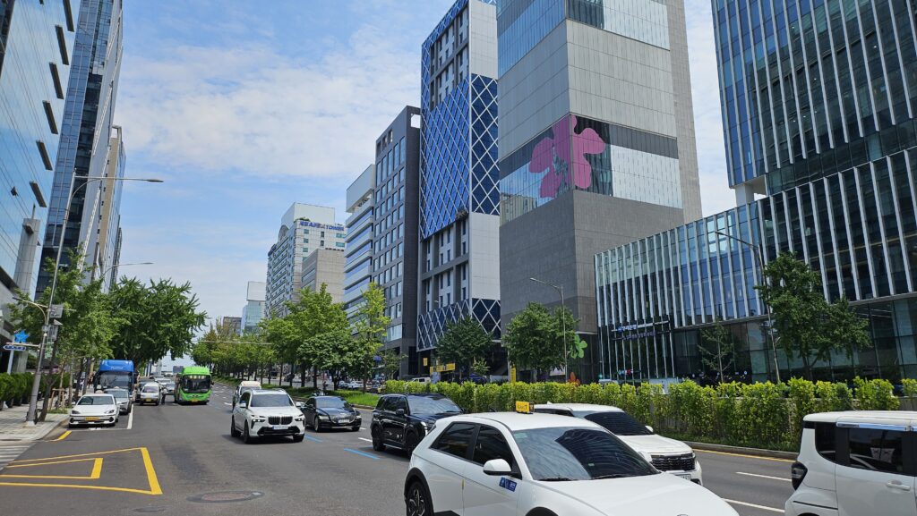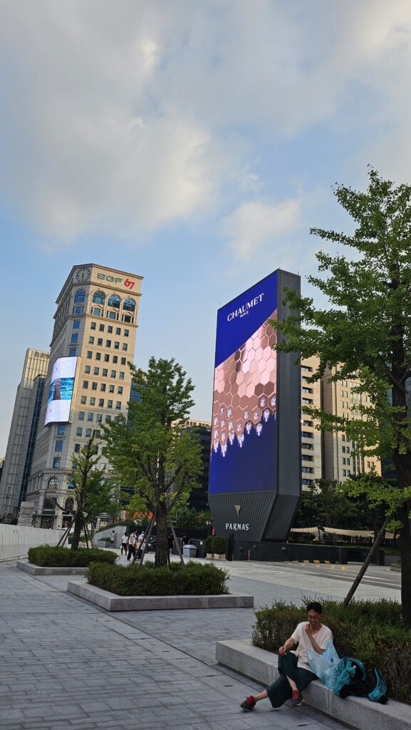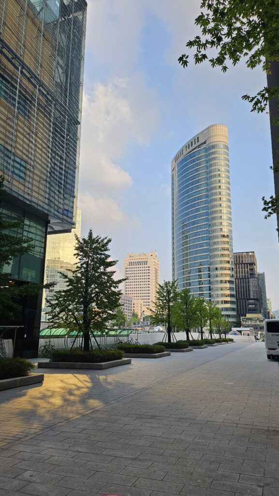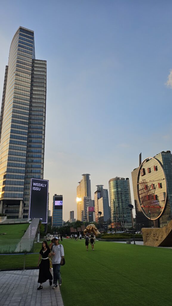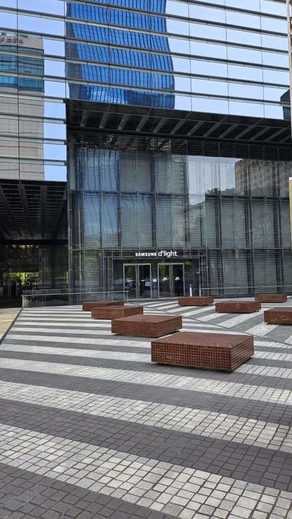 La tour Samsung se situe dans le quartier GANGNAM, à quelques stations de la ligne rouge du métro. Je suis les indications de mon ami Google et j’arrive facilement devant le magnifique bâtiment.