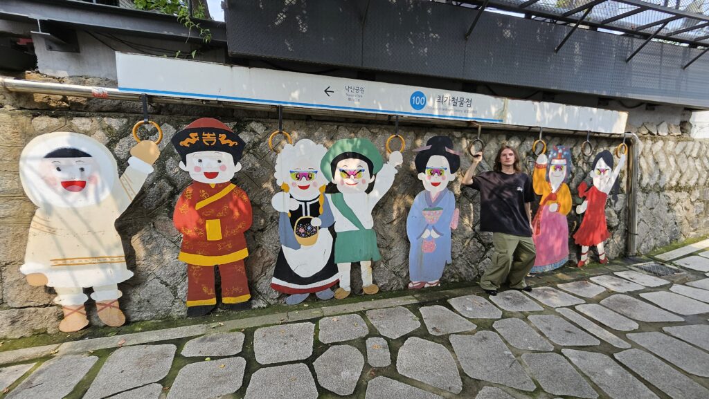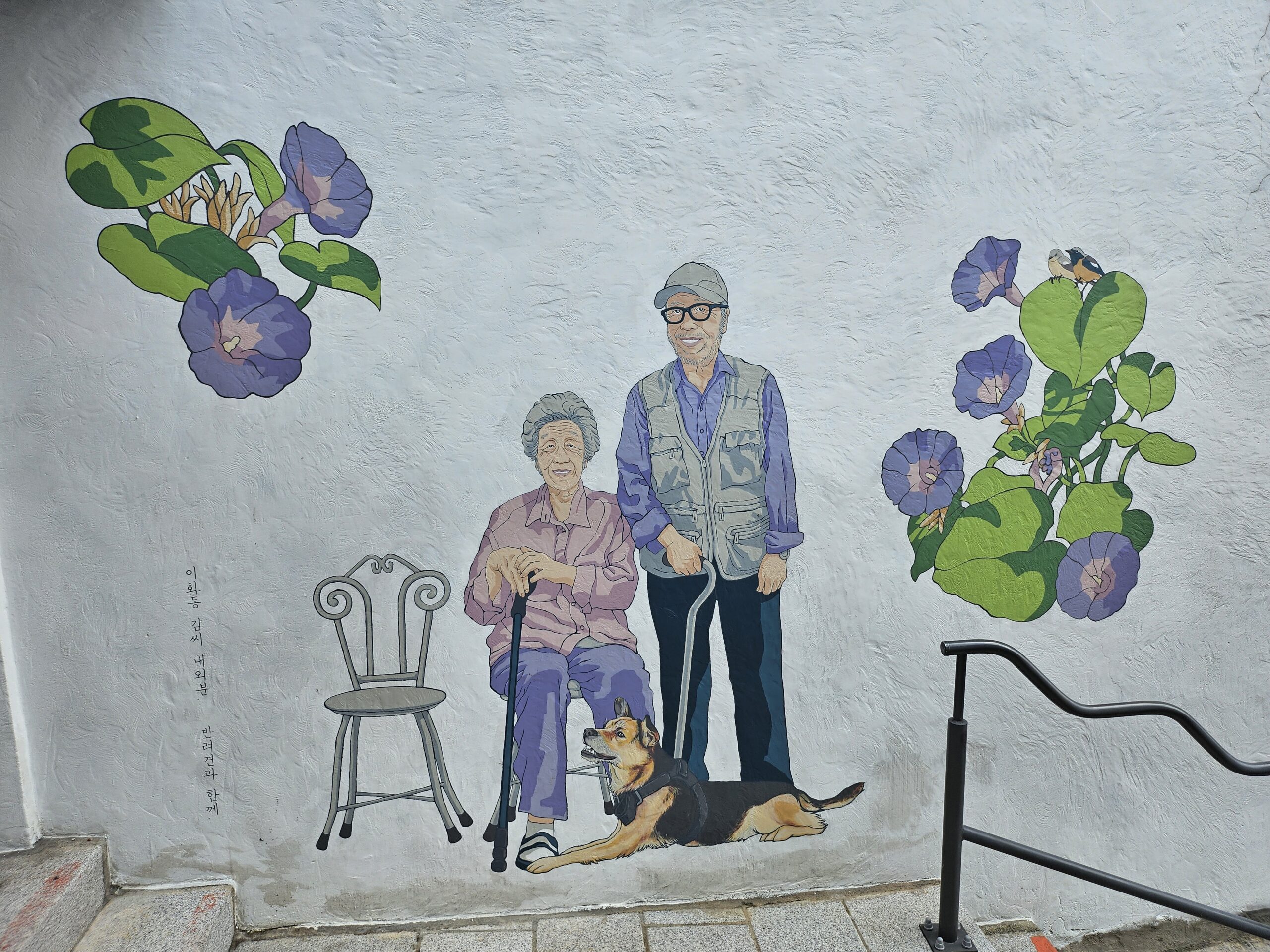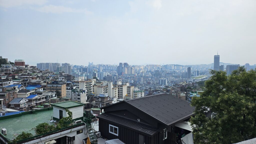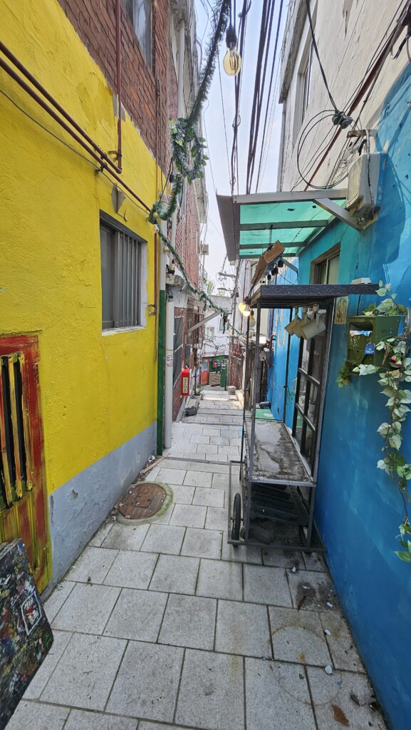 Un chouette moment si l’on n’a pas peur des escaliers et de grimper. Le street art habille les murs, les couleurs sont gaies. Il n’y a pas des centaines d’oeuvres, et jai vu mieux. Mais l’intérêt des lieux ne réside pas que dans les fresques, c’est surtout pour les panoramas. À mesure que l’on monte, les vues sur Séoul sont en effet très sympathiques. Un autre coin de Séoul encore très différent des autres quartiers visités jusqu’ici. Un peu le vieux Séoul…