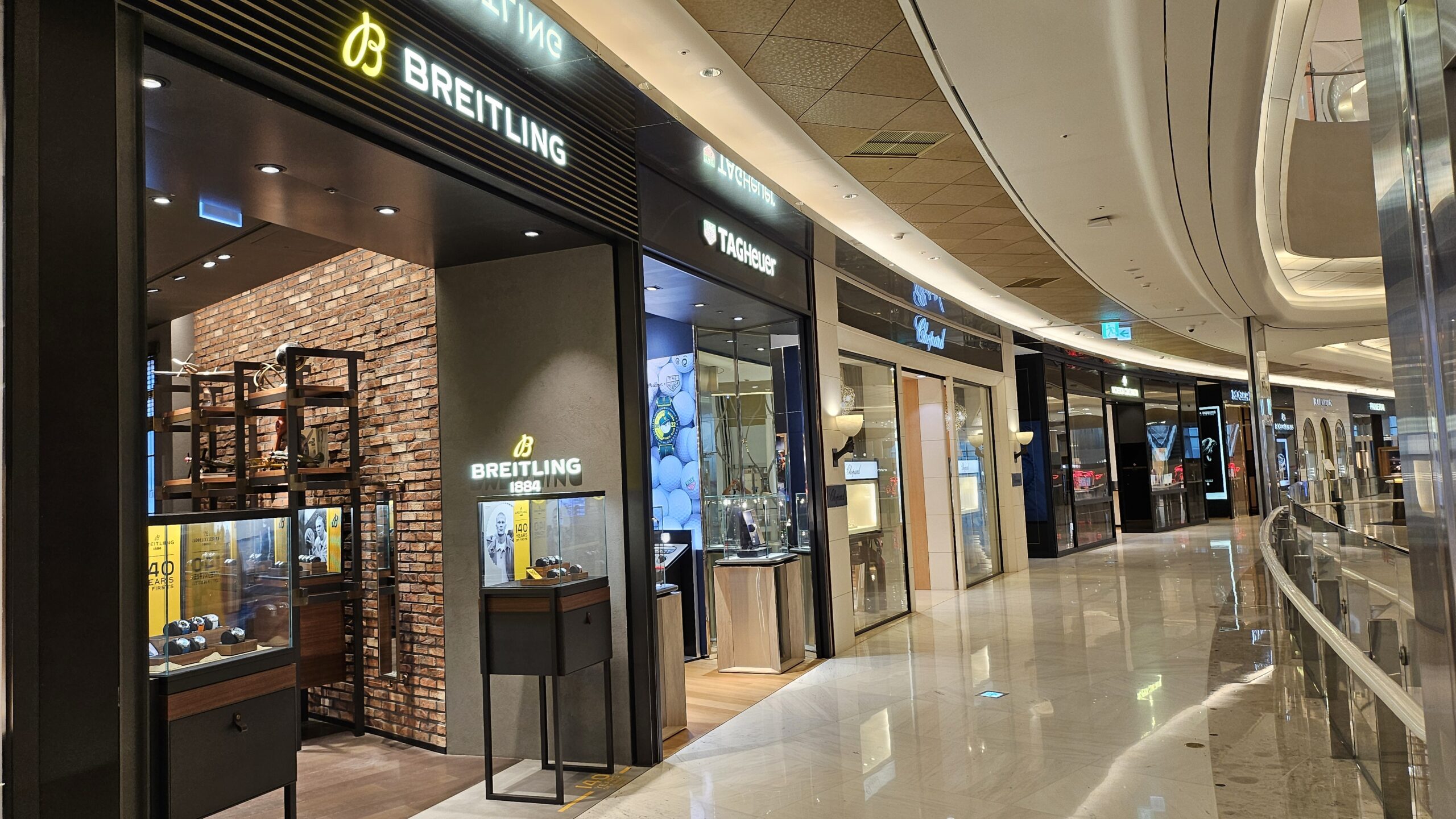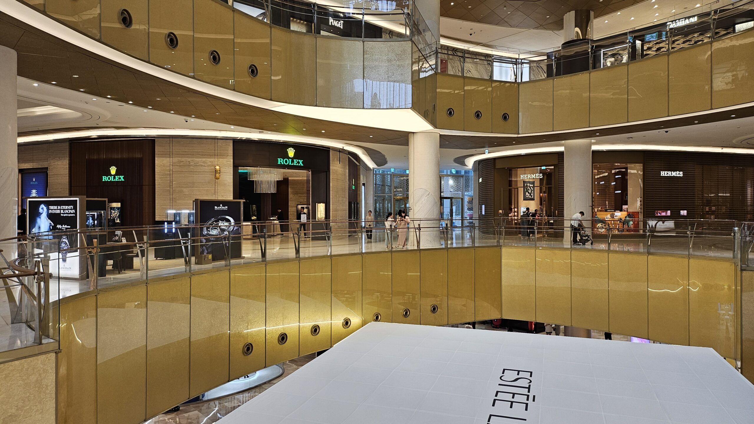 Nous entrons par le pied de la tour par une galerie ou seules les marques de luxe ont leurs places. Fabien, ces photos sont pour toi !