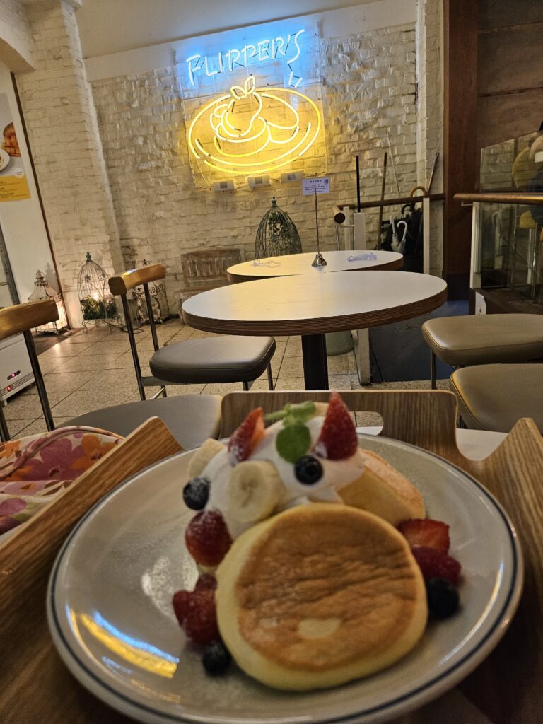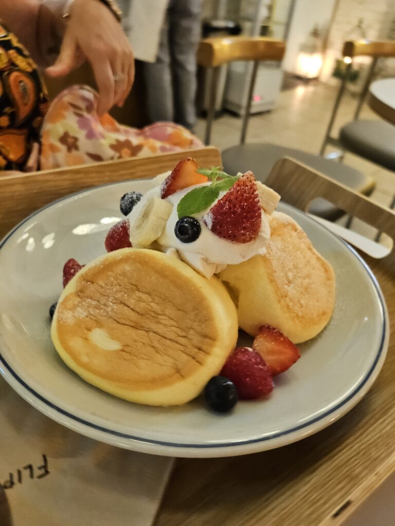 En repartant, on s’arrête au Flipper’s et Patricia me fait découvrir le fluffy pancake . Excellent ! C’est fin, ça se mange sans faim !