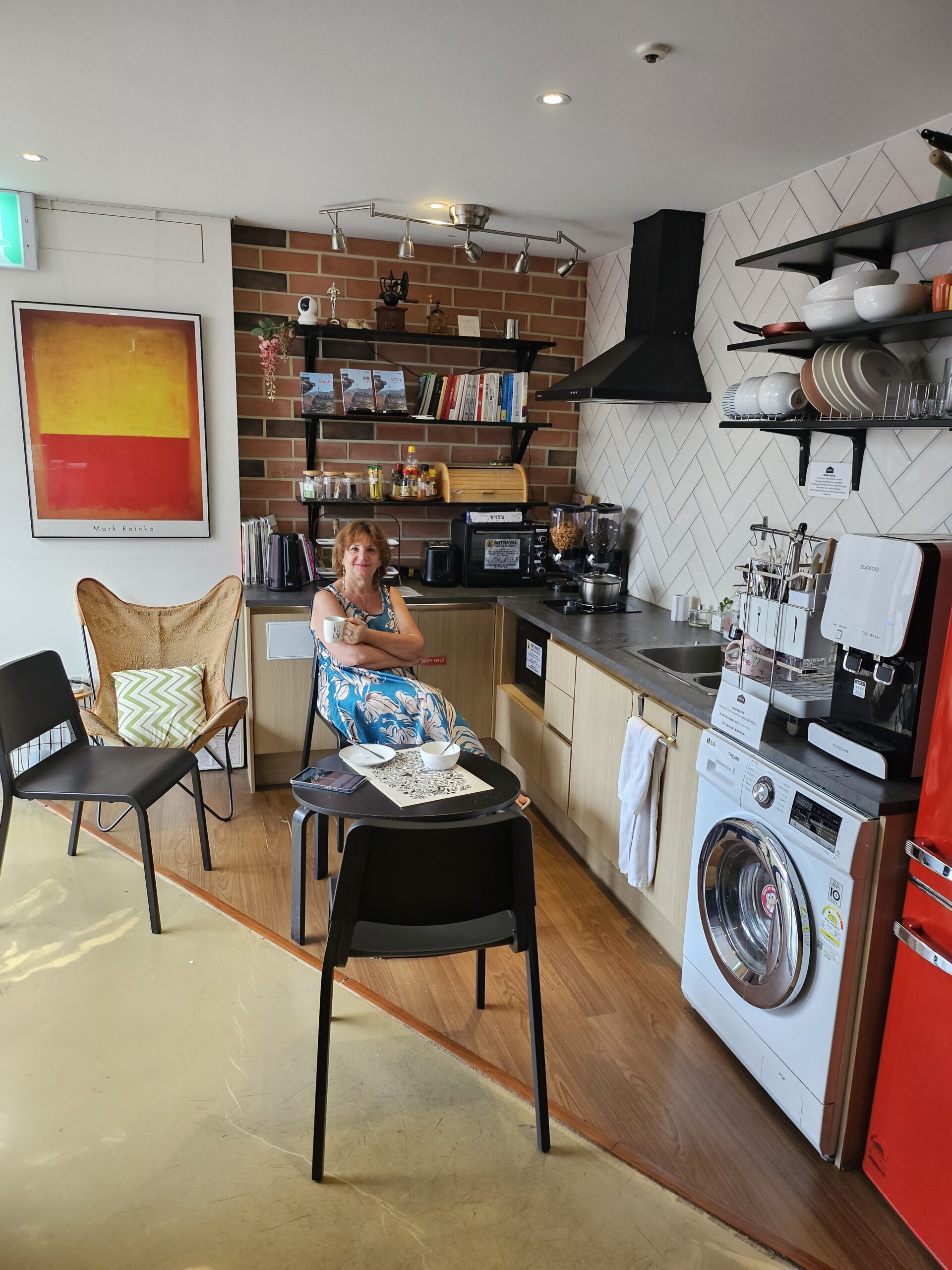 Nous avons découvert que ARTRAVEL mettait à disposition gratuitement de quoi prendre le petit déjeuner: Café (soluble), thé, tartines de pain de mie, beurre et confiture. Nous nous installons donc dans la cuisine pour une collation matinale bien sympathique.