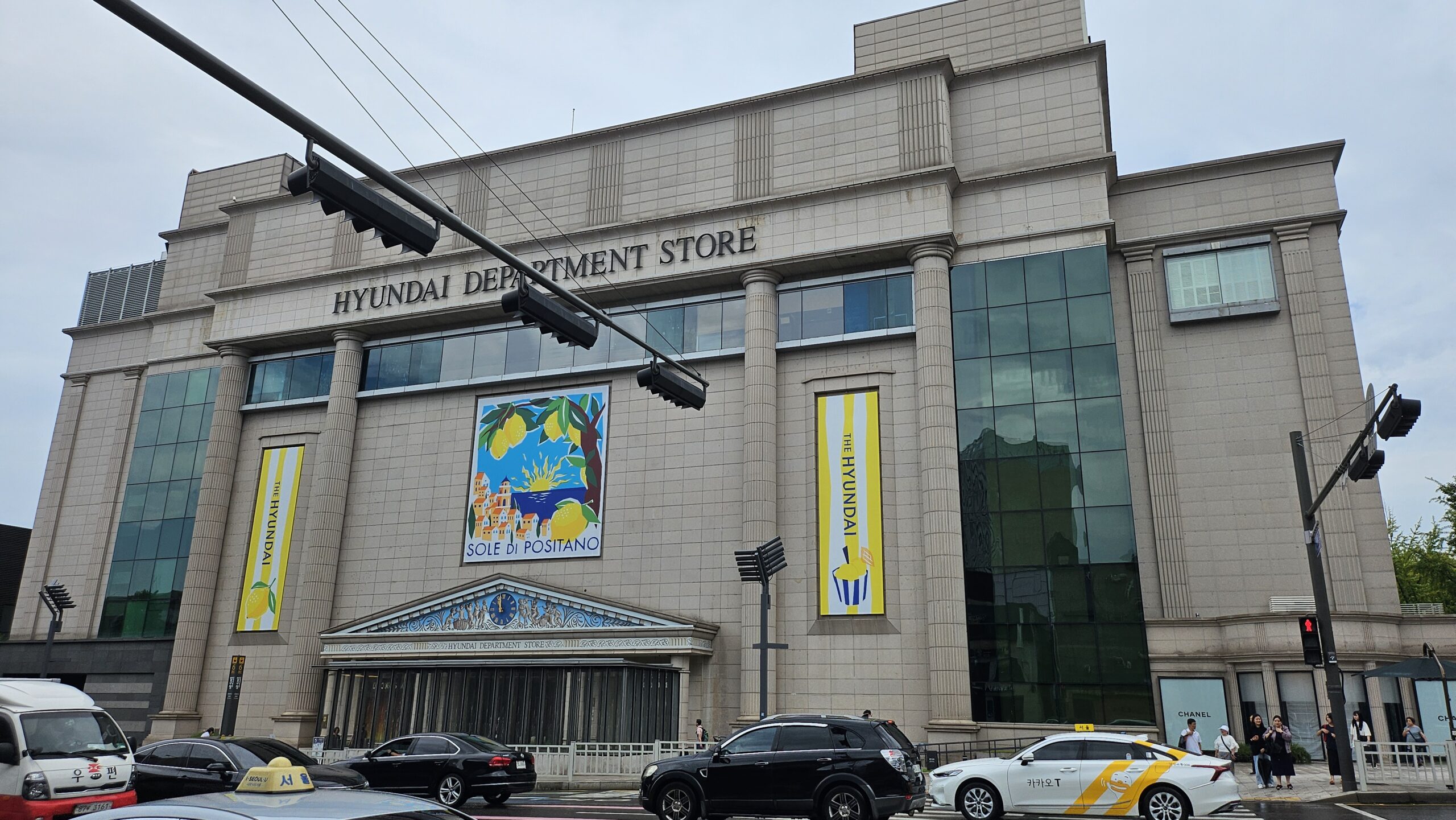Il pleut ce matin … le temps idéal pour faire du shopping ! Nous choisissons de nous rendre au hyundai department store. Selon le guide: « une galerie marchande sur 10 étages avec boutiques de vêtements, principalement destinées aux jeunes et aux étudiants, marques étrangères et coréennes, vêtements pas chers façonnés dans de petits ateliers … »