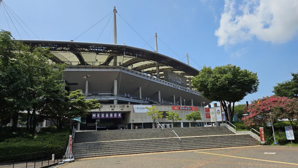 La nature autour du stade à été préservée puisqu’il est entouré de 4 grands parcs : le pyeonghawa parc, le haneul Park, le noeul Park et le nanjicheon Park.