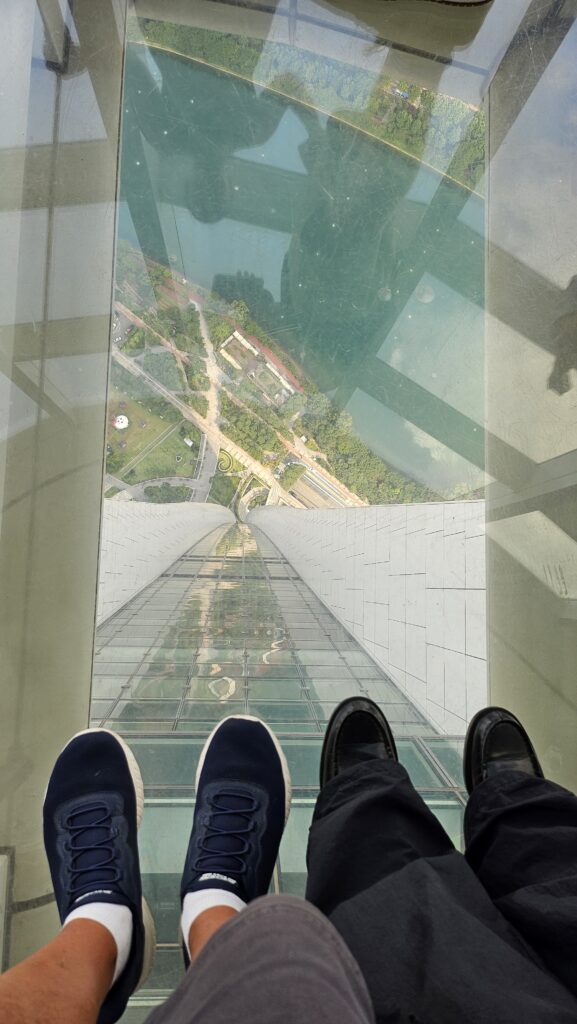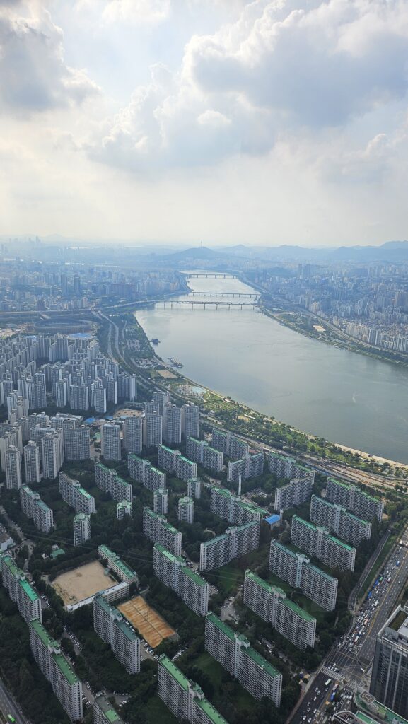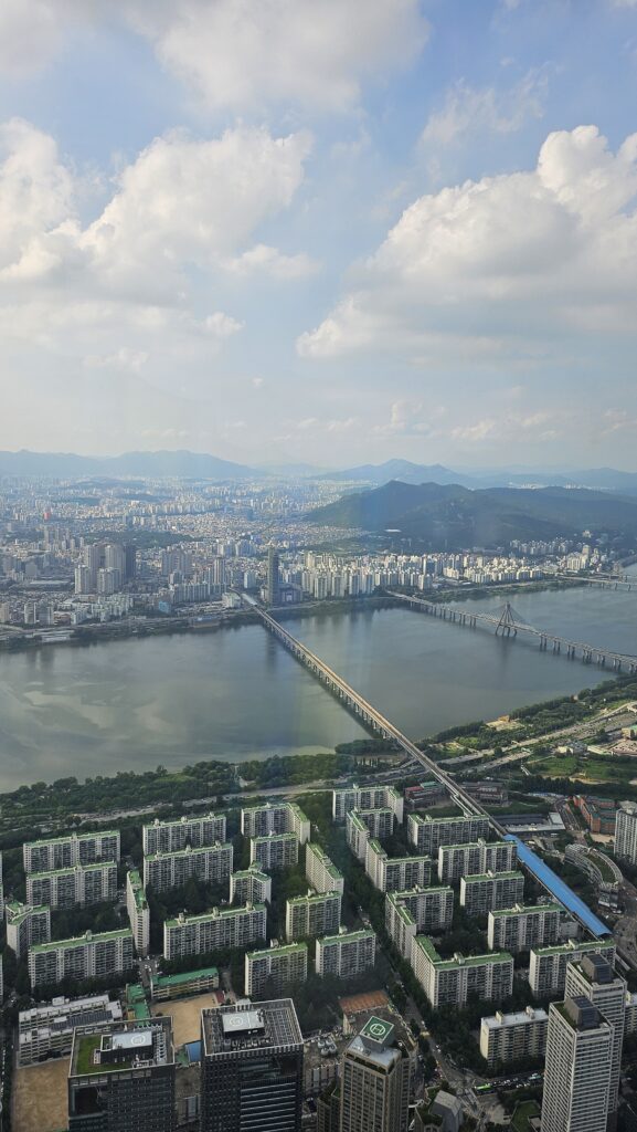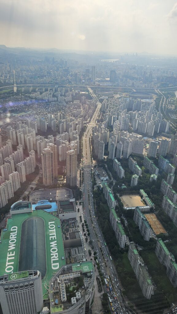 Le ciel est bleu, la vue dégagée… le temps idéal cette fois pour monter au 121ème étage de la splendide tour LOTTE. Il n’y a que 6 endroits dans le monde où l’expérience est possible. Je ne peux pas laisser passer l’occasion. C’est notre dernière journée à Séoul. C’est maintenant ou jamais.