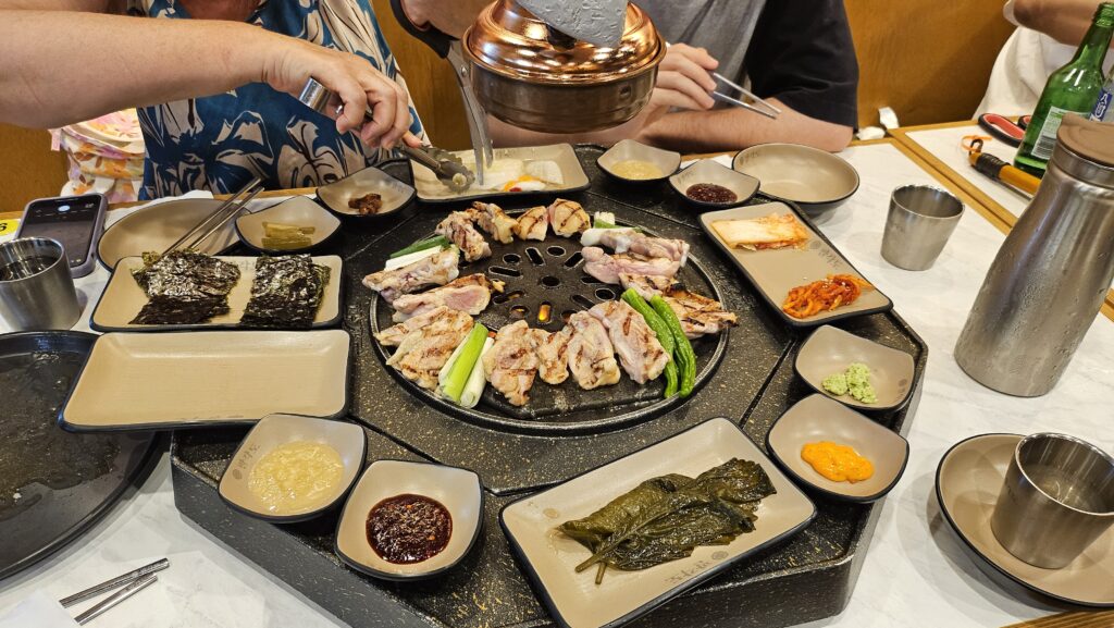 On termine la journée autour d’un barbecue de poulet dans un restaurant proche de la sortie de métro jongno 3. J’adore le principe du barbecue au milieu de la table !