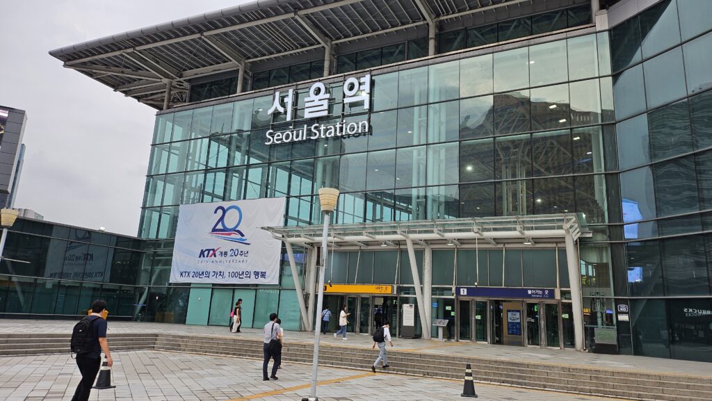 20h00: Pour 22 euros pour 3, nous prenons un train express qui nous amène à seoul station (métro) en 50mn. Puis la ligne 4 du métro nous dépose à quelques pas de notre logement, dans le quartier Myeong Dong à l’auberge de jeunesse ARTRAVEL.