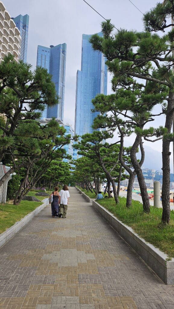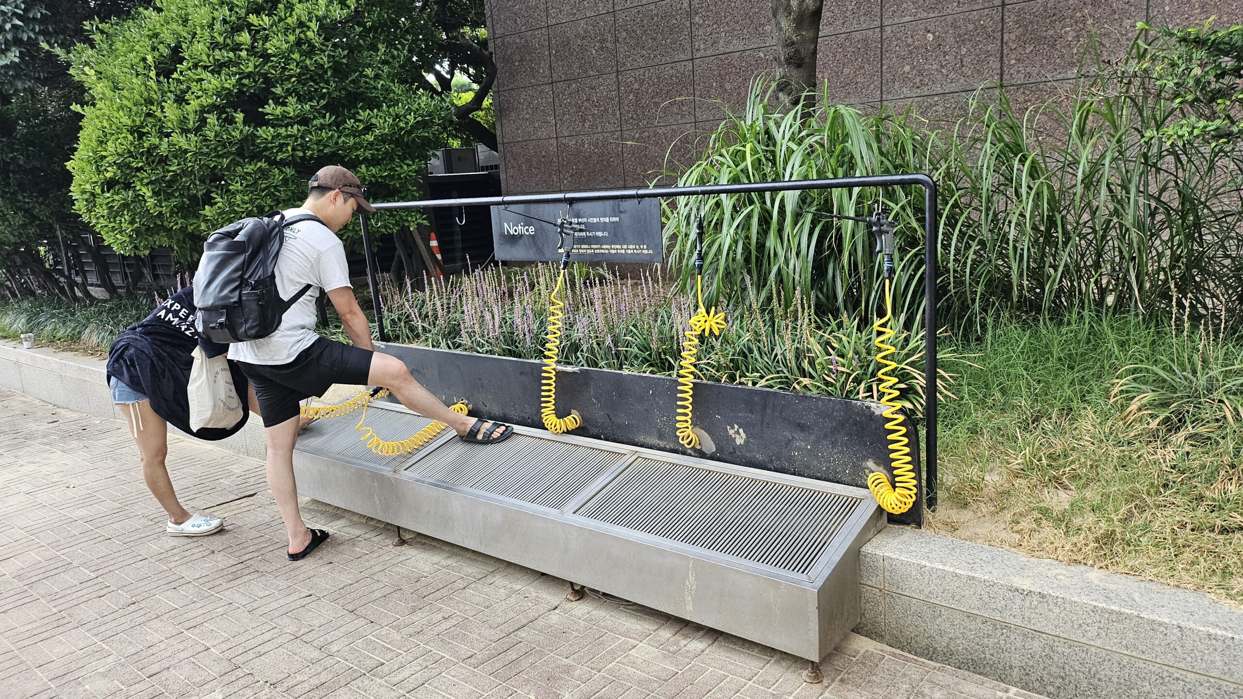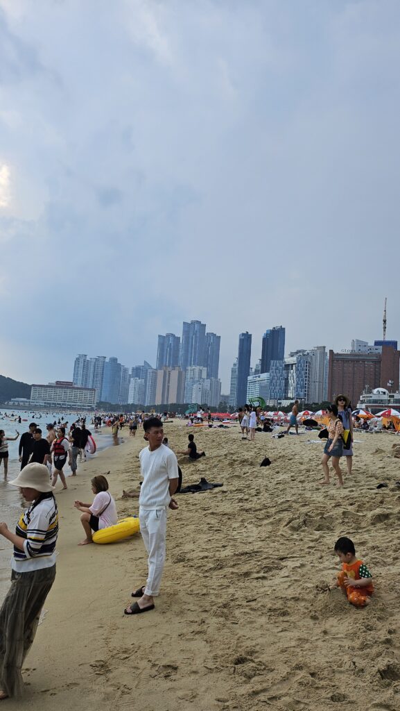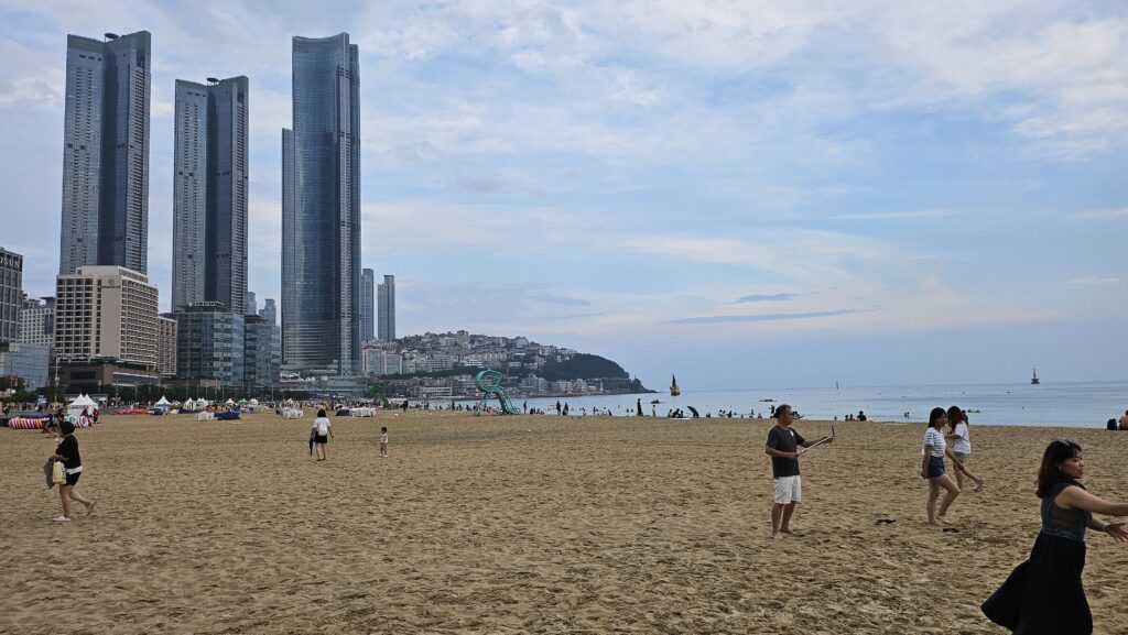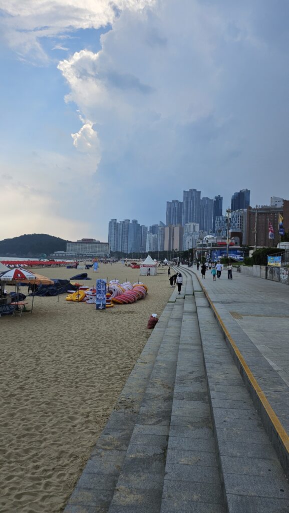 Le sable est blanc et très fin. Il est difficile de s’en débarrasser. Les coréens ont trouvé l’astuce: l’air soufflé ! On trouve des bornes avec air comprimé et soufflettes en libre service !