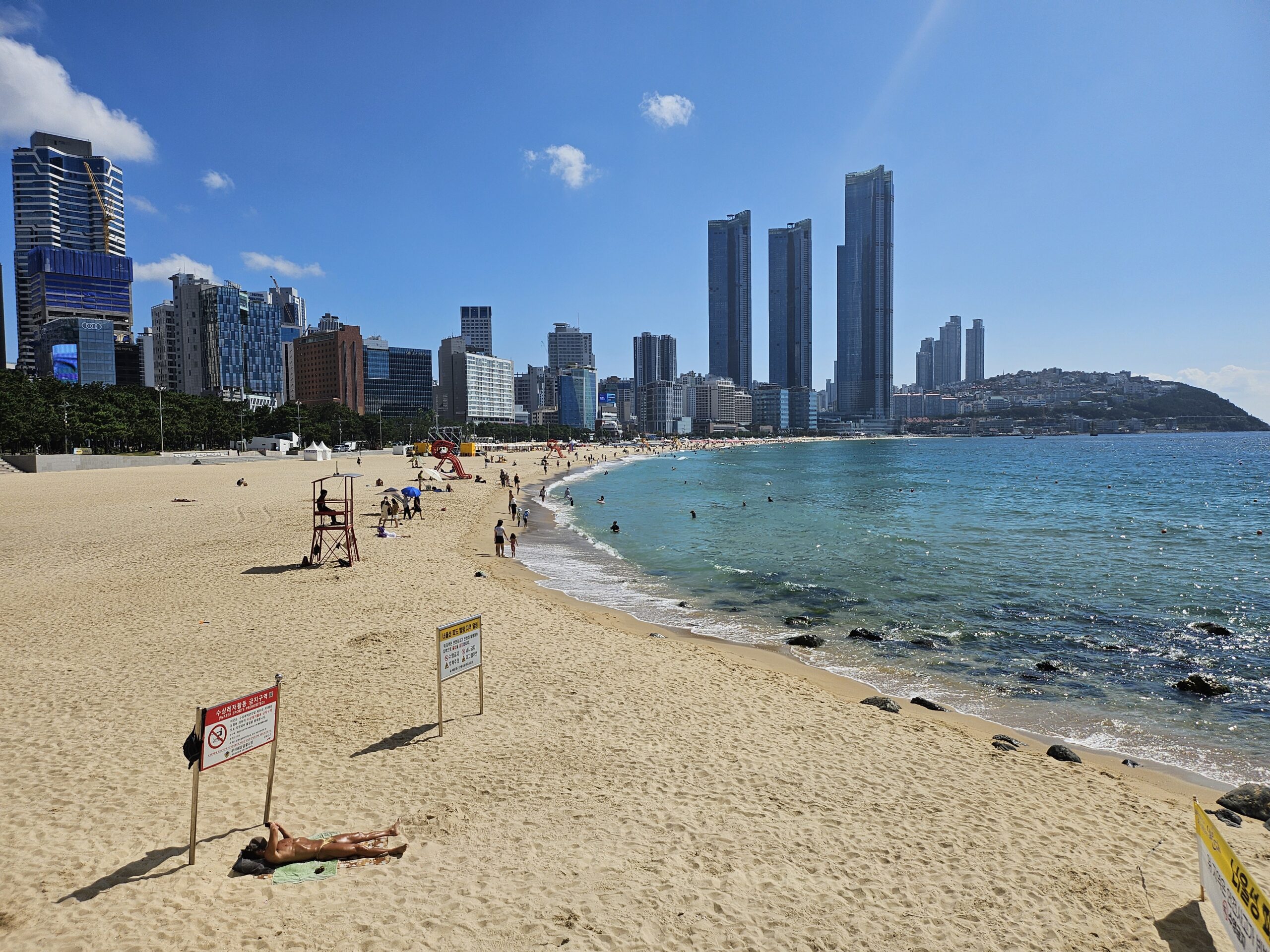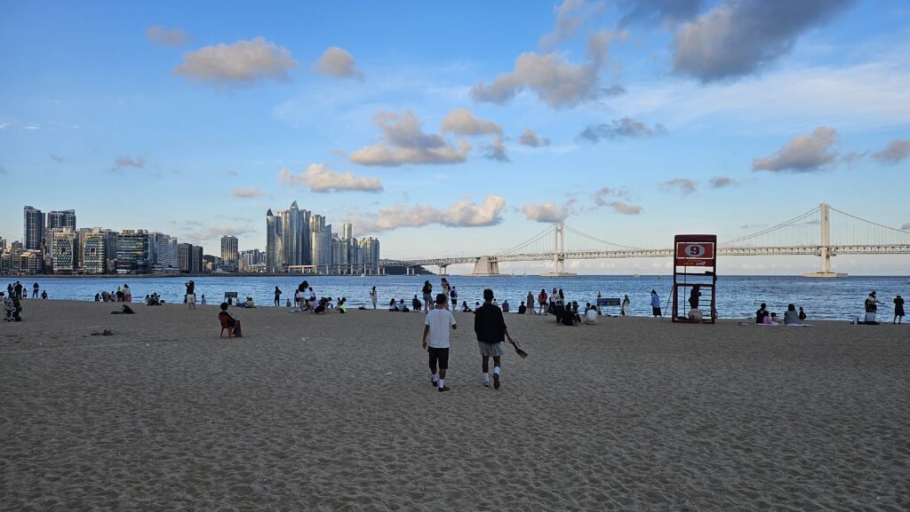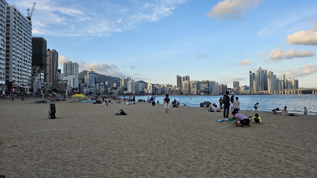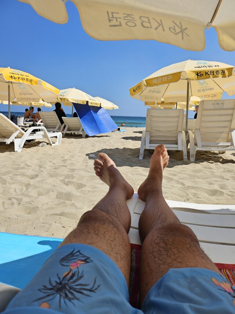 Une partie de l’après midi est consacrée à la baignade. Je ne peux pas venir à Busan et louper l’occasion de me baigner dans la mer du Japon !