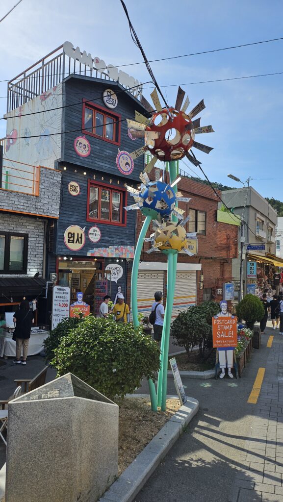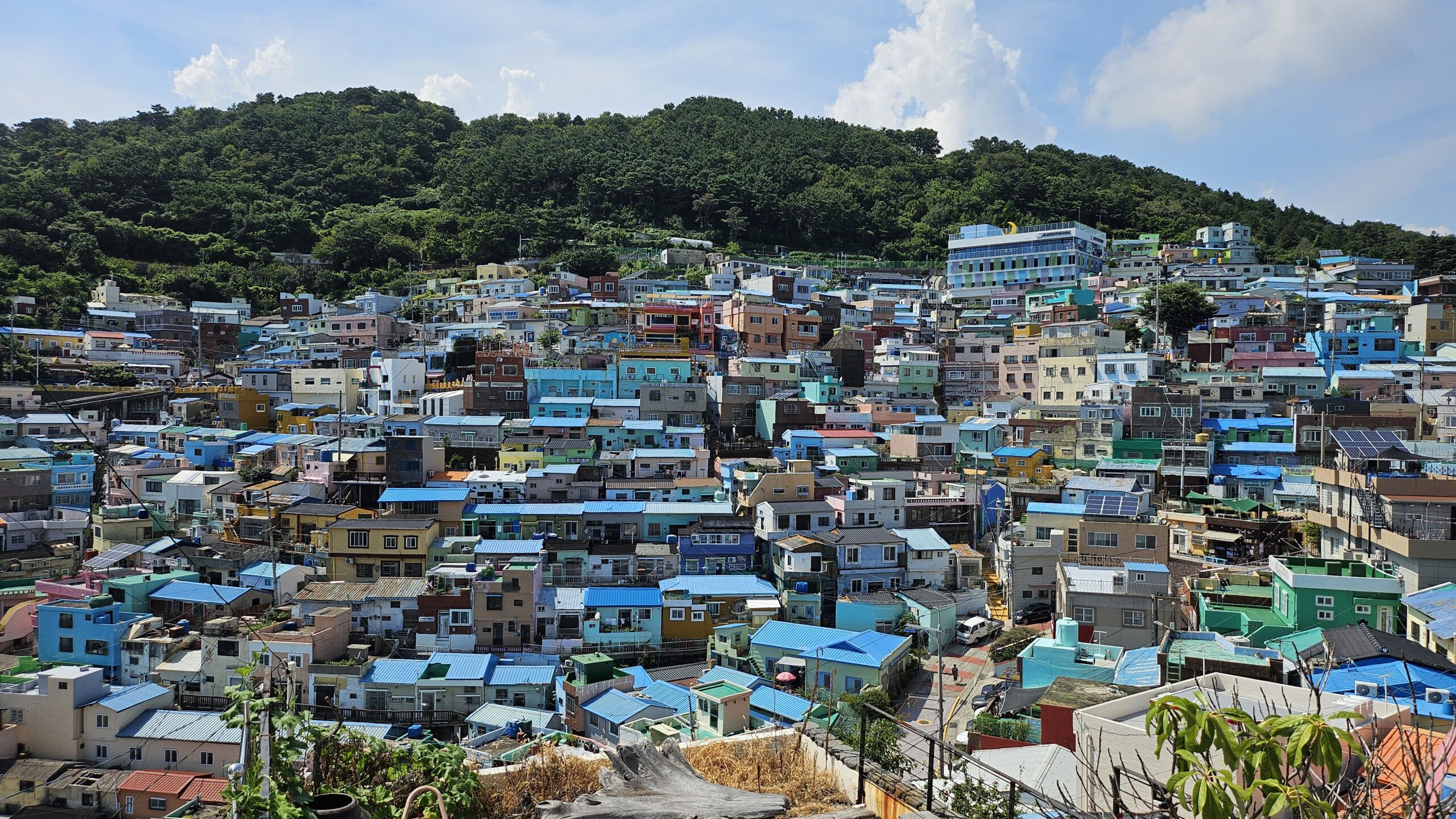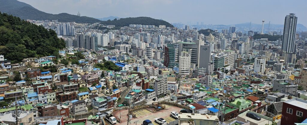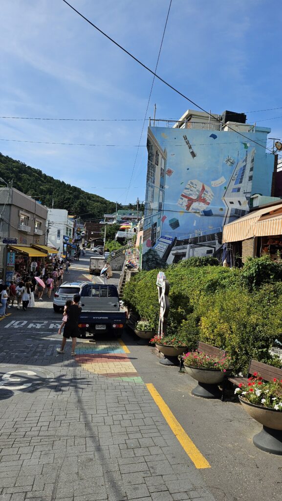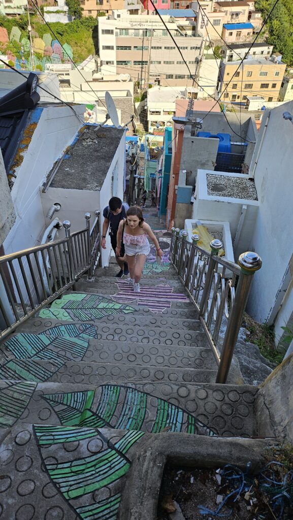 Le village est perché et l’ascension est rude. L’avantage est, qu’au sommet, la vue du village et de Busan est imprenable.