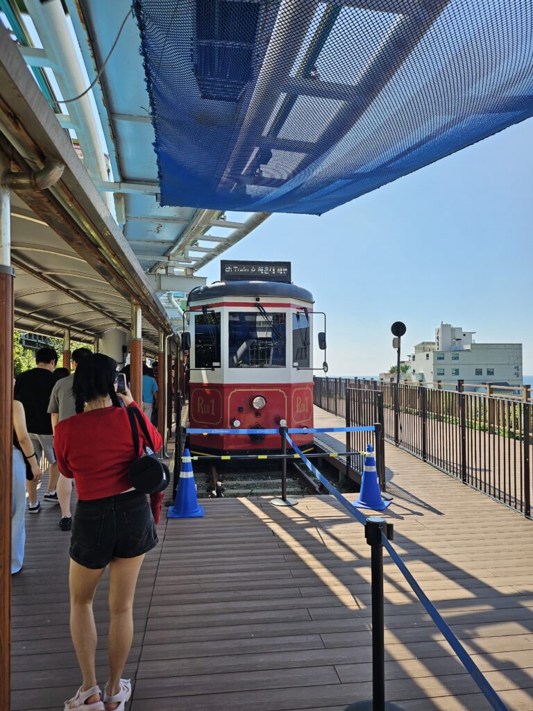 A CHEONGSAPO nous reprenons le Beach Train qui nous amène au terminus, station SONGJEONG, pour voir SONGJEONG BEACH.