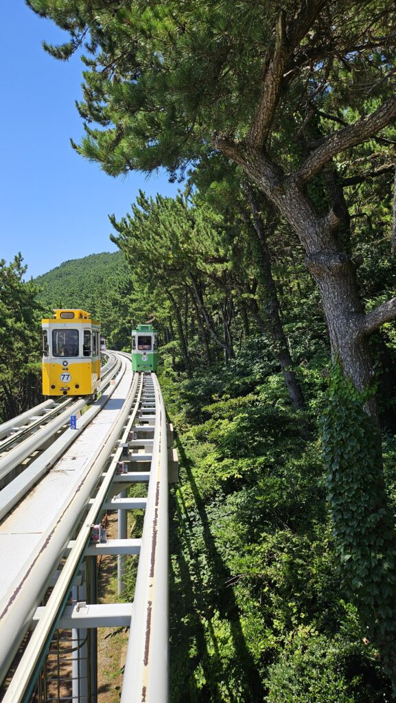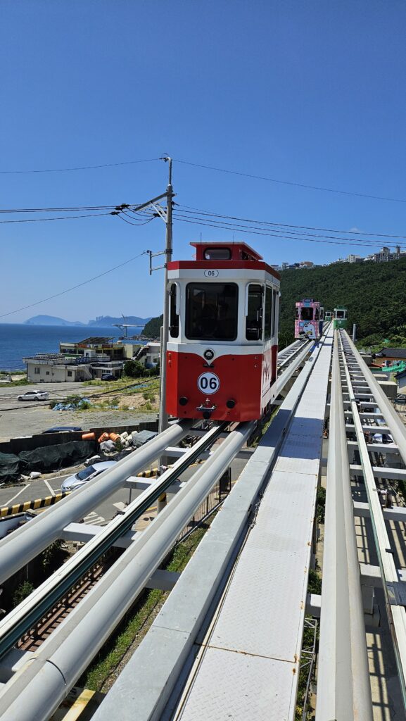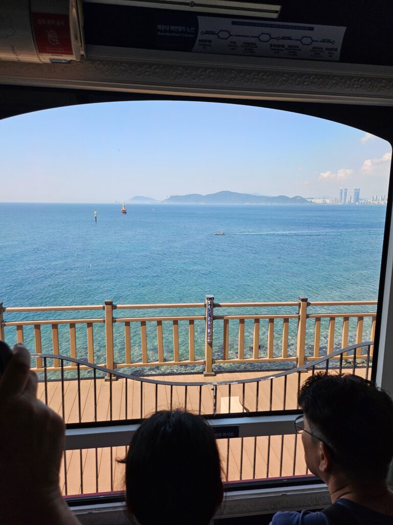 Nous prenons le pack Beach train + sky capsule, ce qui va nous permettre de faire le trajet de MIPO à SONGJEONG en train avec un accès à toutes les stations intermédiaires (soit une distance 4,5km) et un retour de Cheongsapo à MIPO en sky capsule (soit une distance de 2 km qui sera parcourue en 30mn sans arret possible).