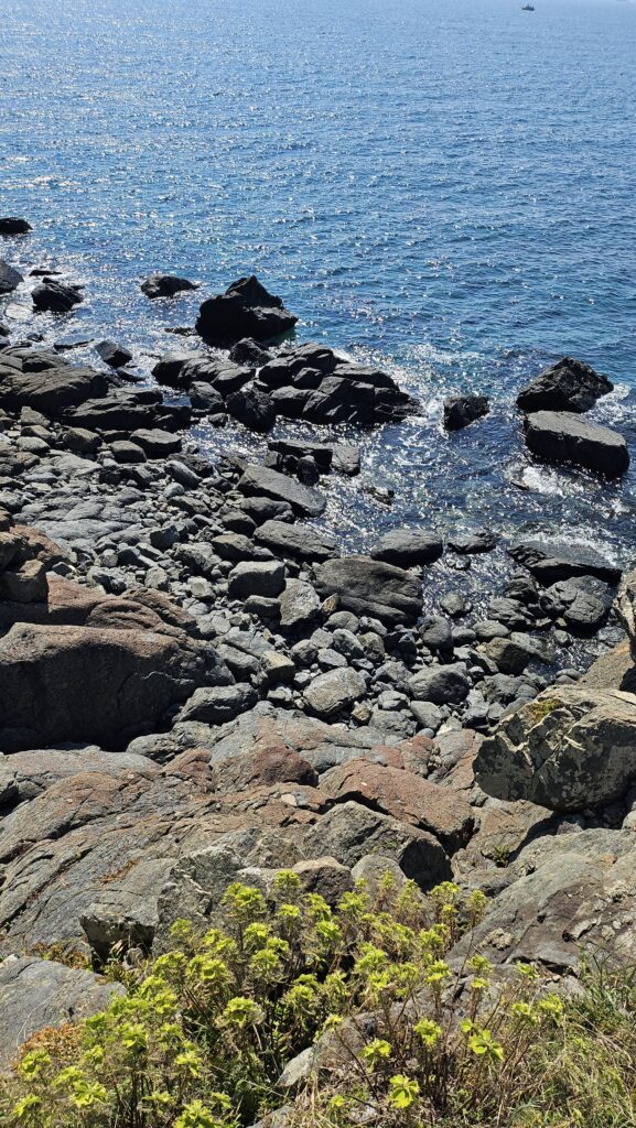 J’avais repéré le départ d’un « chemin du littoral » en bout de plage, pas très loin. Je décide d’aller voir. Très bonne idée…Le site est superbe et très bien aménagé avec des zones de détente sur le parcours.