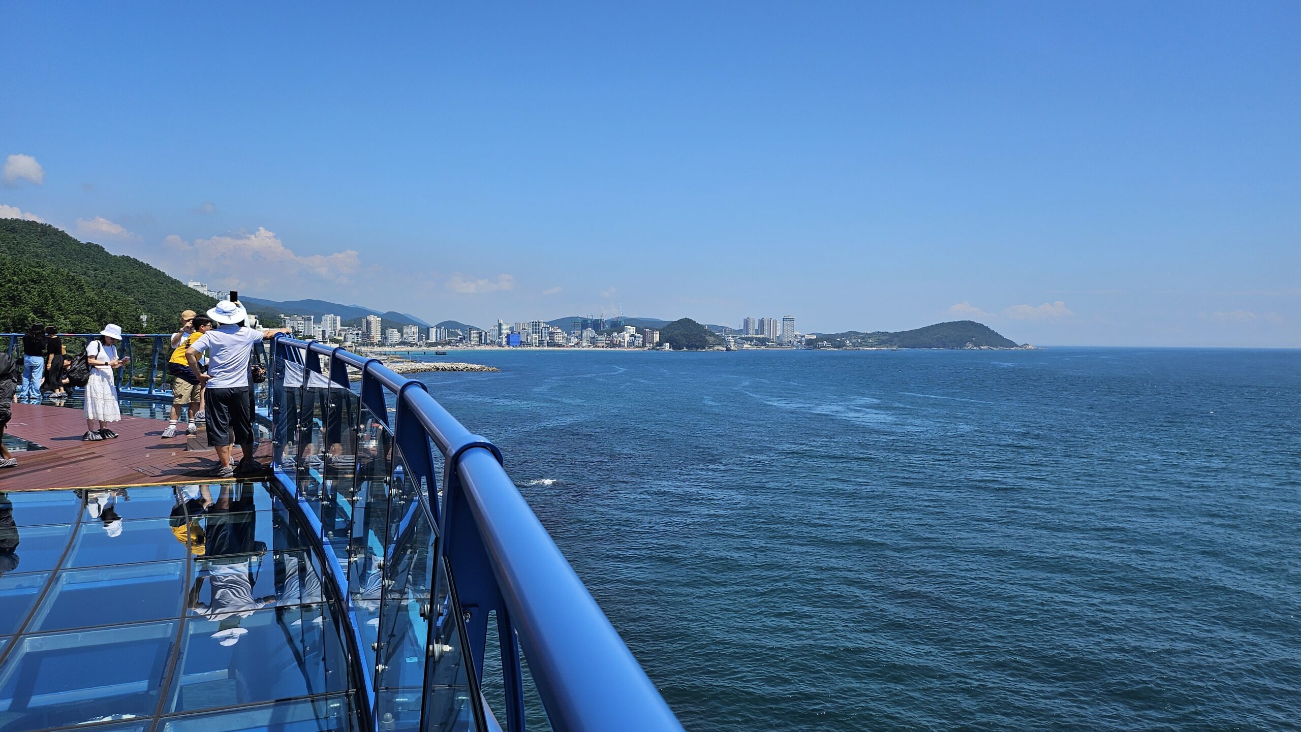 Nous descendons à la station HAEWOL SKYWALK pour observer le paysage sur un pont construit sur la mer avec un sol en verre transparent … surprenant !