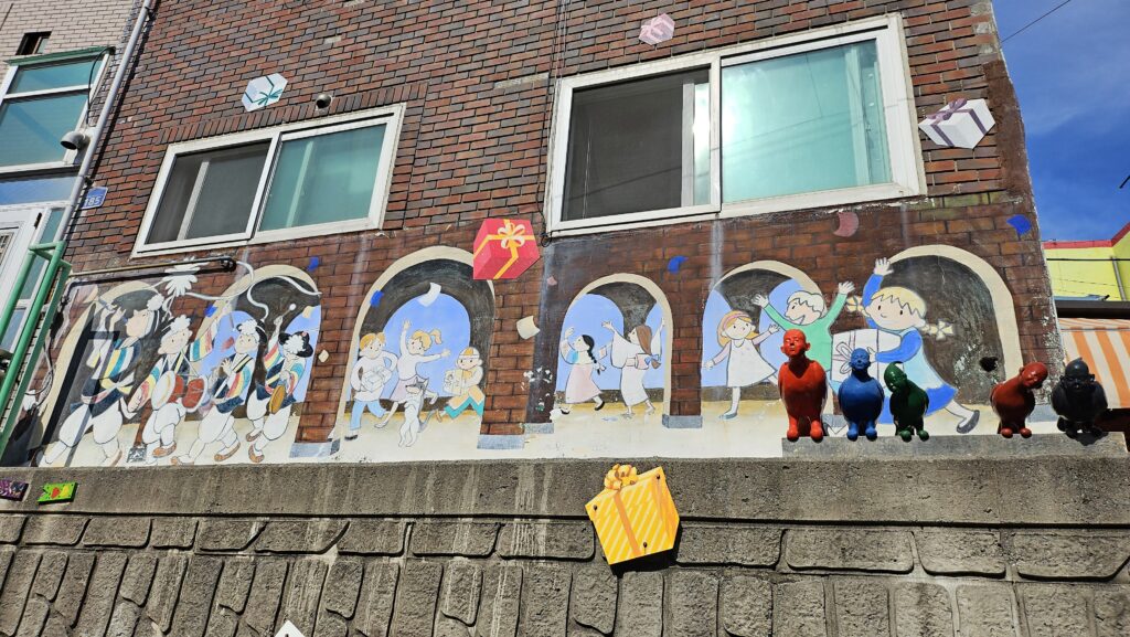 Cet ancien bidonville a été totalement réhabilité en 2009 sous l’impulsion d’artistes et de résidents locaux. Depuis, c’est devenu un véritable village artistique et un site incontournable de tout passage dans la ville de Busan, et on comprend pourquoi ! Les habitations ont été repeintes dans des tons pastel, des galeries d’art, des petites échoppes parfois cachées ainsi que des cafés ont ouvert leurs portes un peu partout et des fresques murales ont envahi les murs des dédales de ruelles. C’est un réel bonheur de se promener dans ses rues étroites, toutes décorées et dans lesquelles de nombreuses surprises vous attendent.