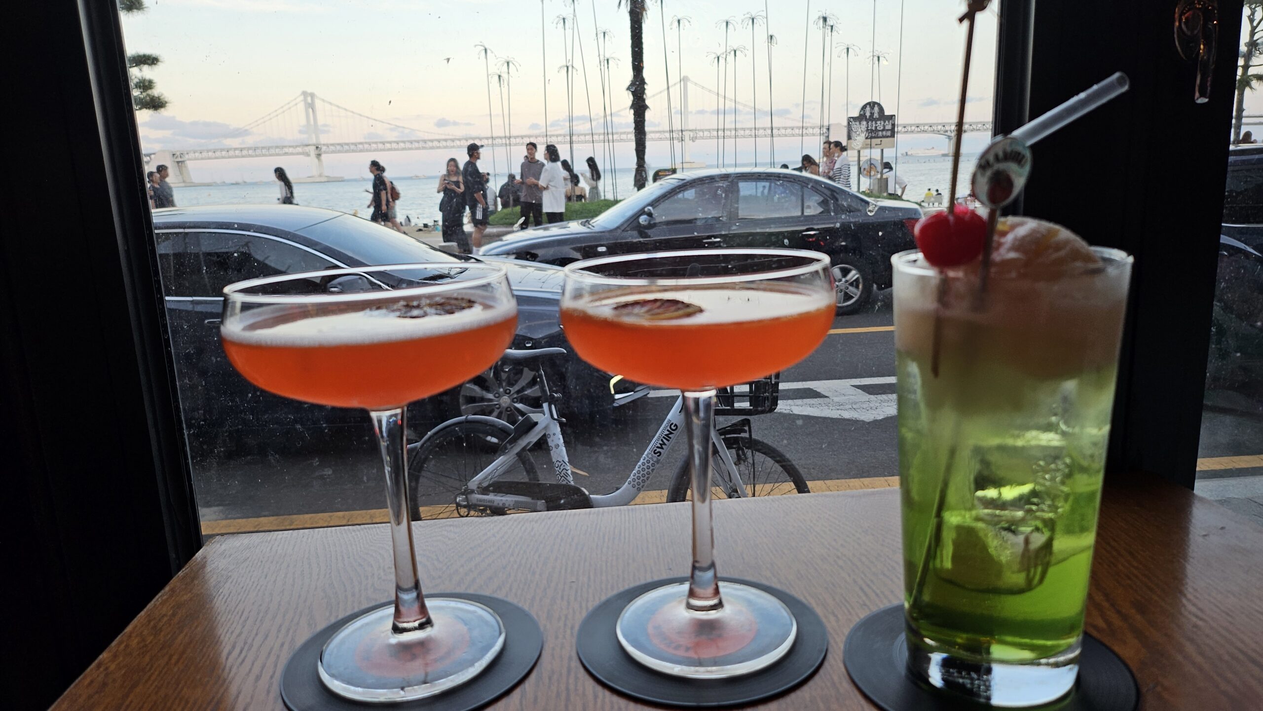 GWANGALLI est plus balnéaire que HAEUNDAE. Bar à cocktails, pub, restaurants se succèdent tout le long de la plage. Les rues sont très animées. On est Samedi … Peut être que les coréens profitent comme nous de leur week end pour sortir ?