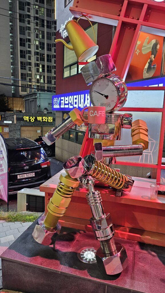 J’associe la Corée du sud à la haute technologie. Chez nous, beaucoup de produits informatiques et électroniques viennent de Corée et je m’attendais à croiser au fil des rues, des boutiques spécialisées dans la high tech. Je n’en ai vu aucune !