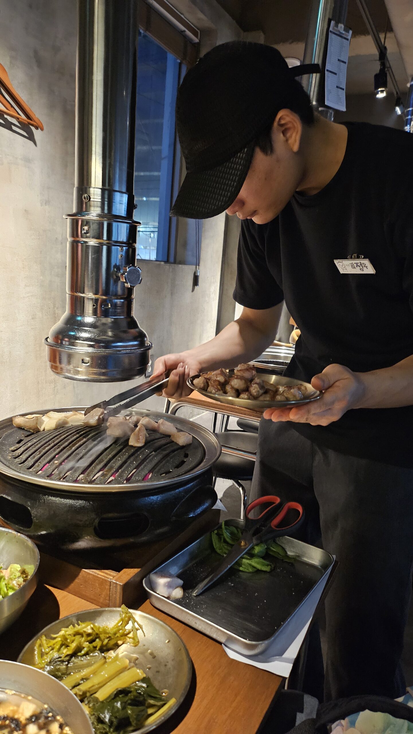 Pour notre dernier soir à Séoul, on a demandé à Mathias de nous trouver un bon restaurant. Il nous amène au Hangong Gan.