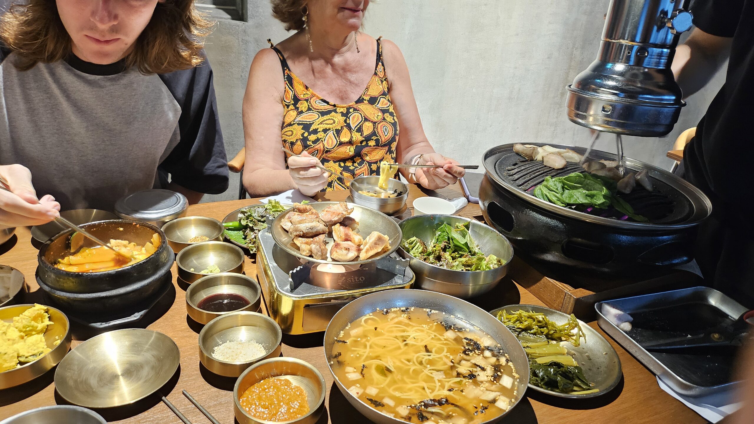 Pour déjeuner, Mathias, notre guide culinaire, choisit de nous amener dans un restaurant Coréen familial: le SULGODANG. Très bon choix. Mon bouillon de bœuf au soja est un délice. De plus le cadre est très agréable et la serveuse bien sympathique.