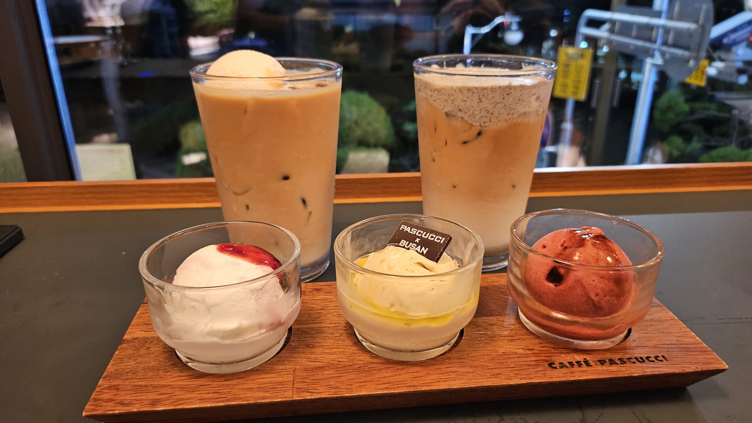 Nous prenons notre petit déjeuner chez OPS, une boulangerie pâtisserie à la « française », qui fait un bon café et surtout des gâteaux et autres sucreries adaptés aux goûts Coréens et aux miens aussi ! Je recommande !