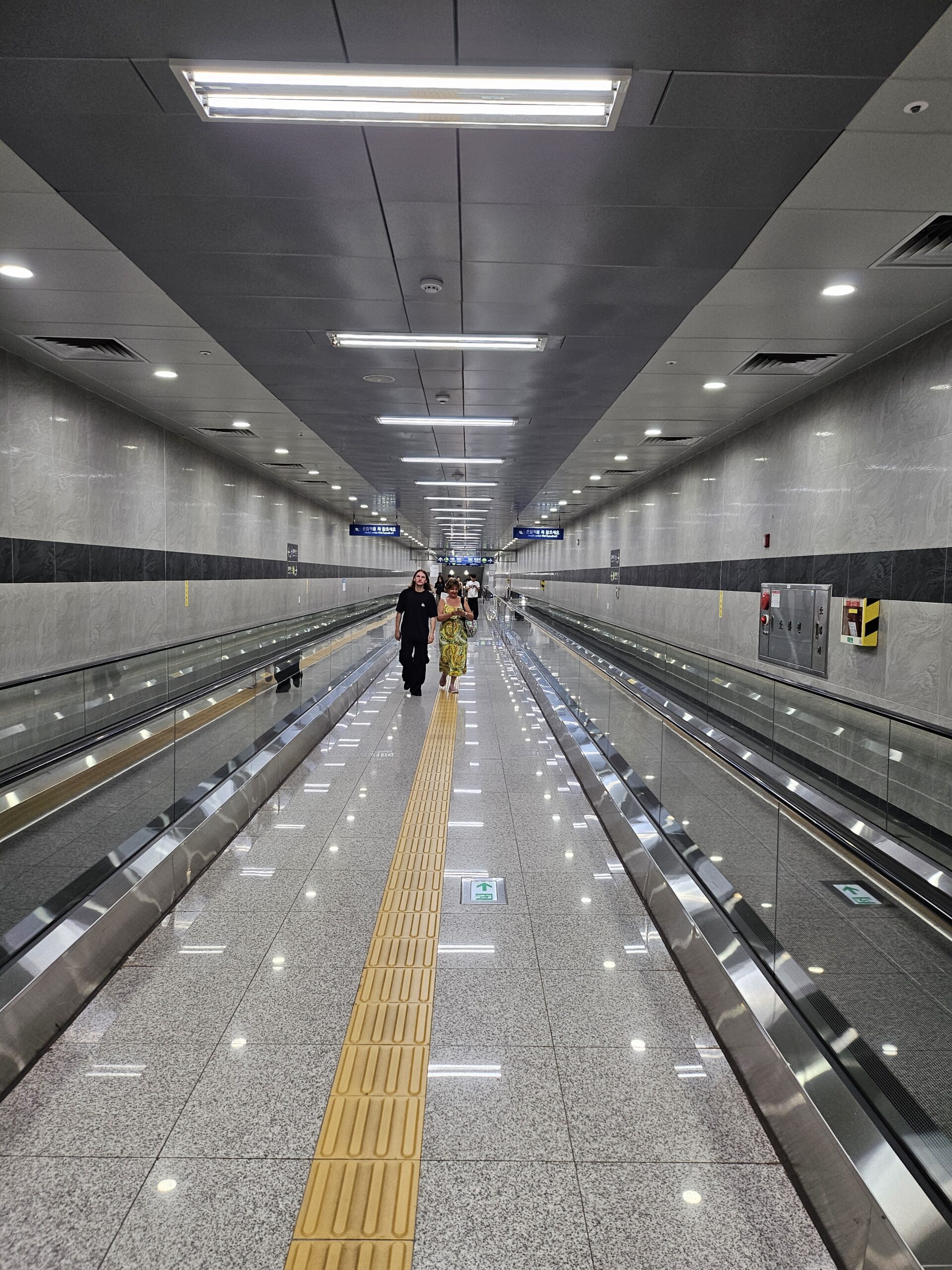 Quand les couloirs sont trop longs, des tapis permettent de se déplacer plus vite !