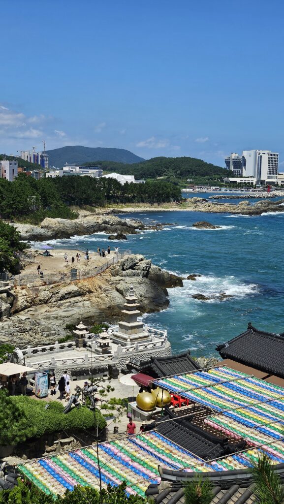 Nous terminerons la visite de cette belle ville par un temple bouddhiste. Il se situe sur les falaises qui longent la mer au nord-est de Busan. Il est desservi par la ligne Busan Gimhae Light rail transit.