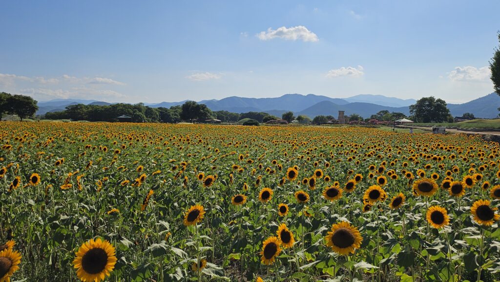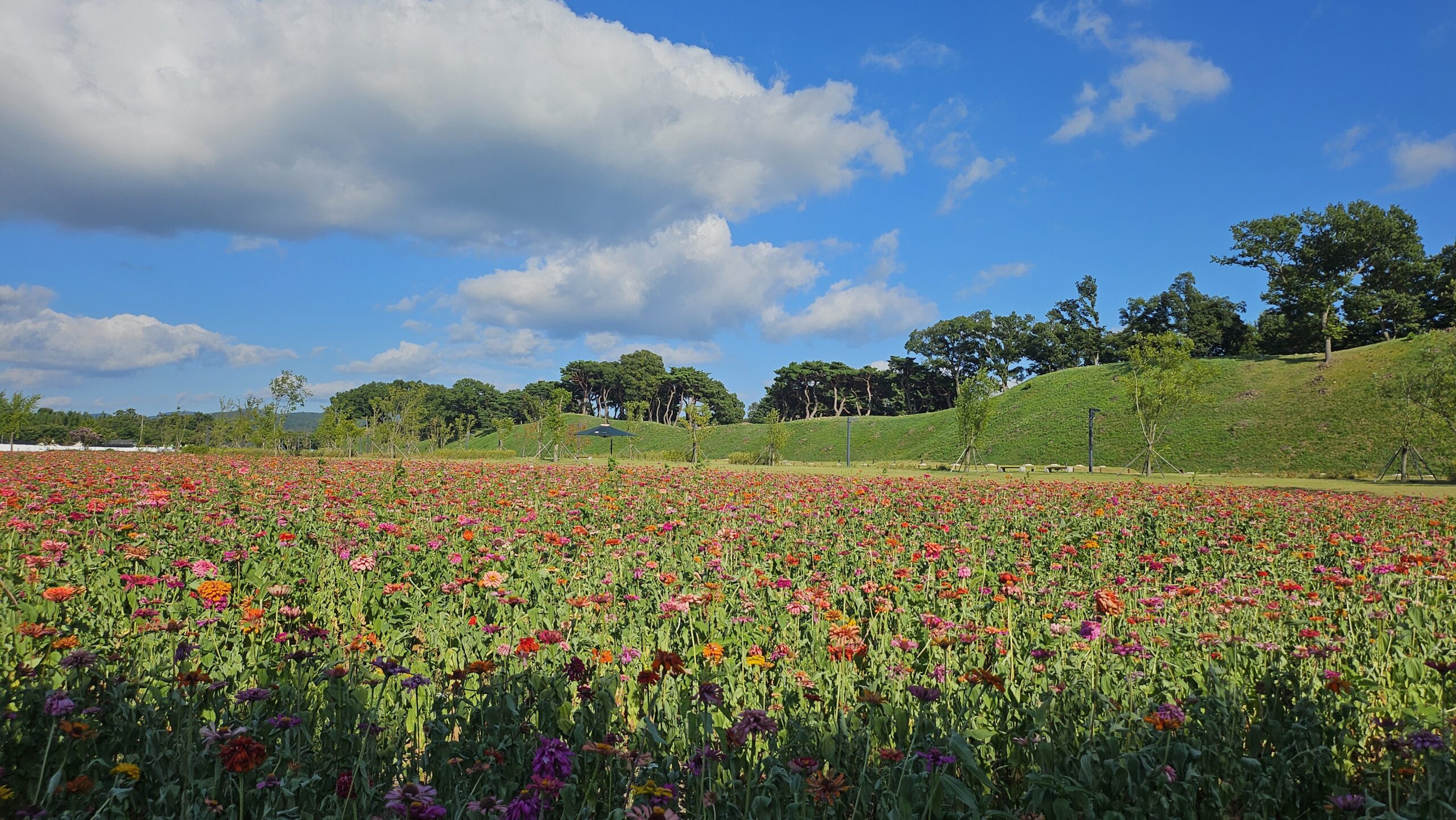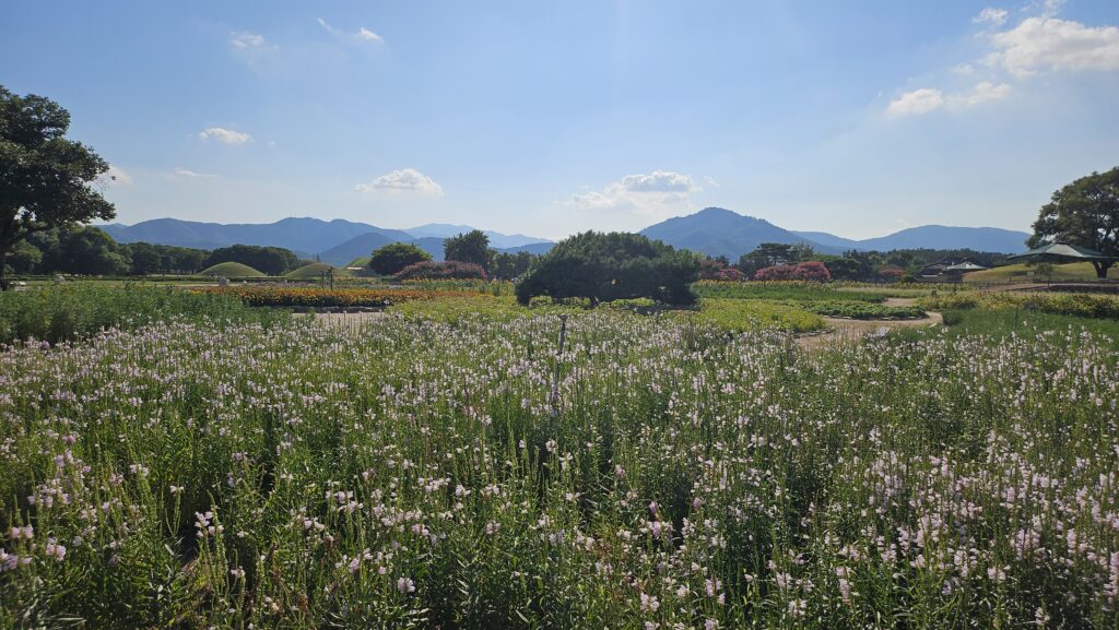 A quelques pas du palais, se trouve le CHEOMSEONGDAE OBSERVATORY. Pour y accéder, nous traversons de magnifiques champs de fleurs. Pour le plaisir des yeux …
