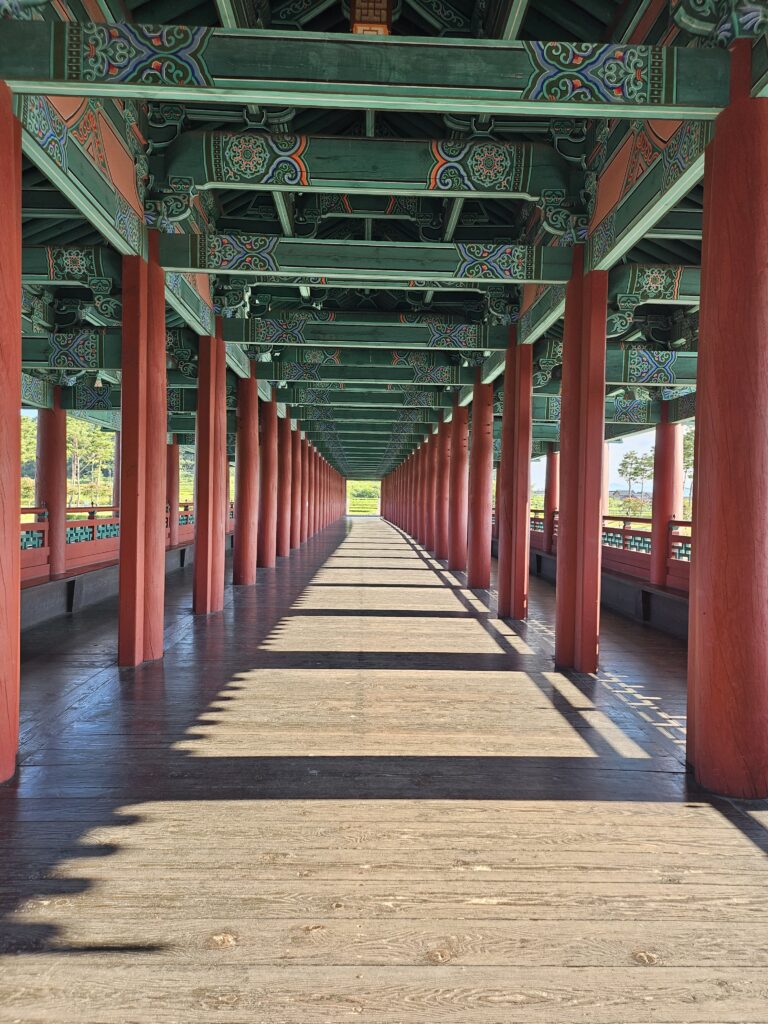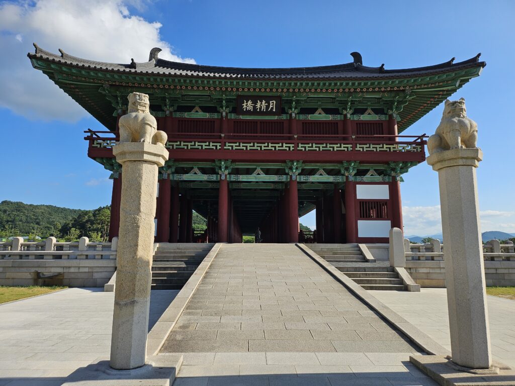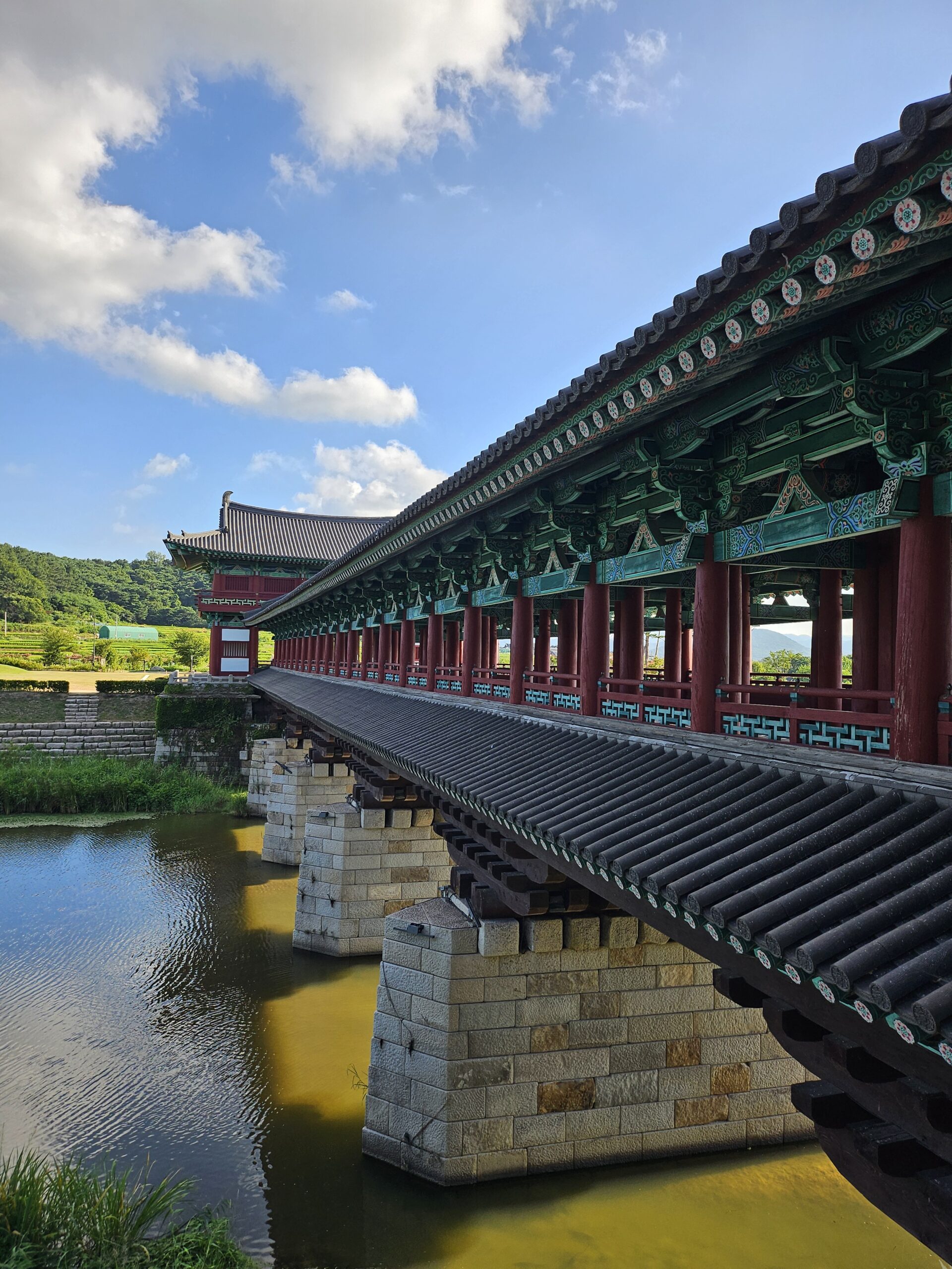 Woljeonggyo est un pont en bois construit pendant la période du Silla unifié, qui a été perdu pendant la période Joseon et restauré en avril 2018 comme le plus grand pont en bois de Corée. D’une longueur de 60m environ, Il permet de traverser la rivière Hyeonsang.