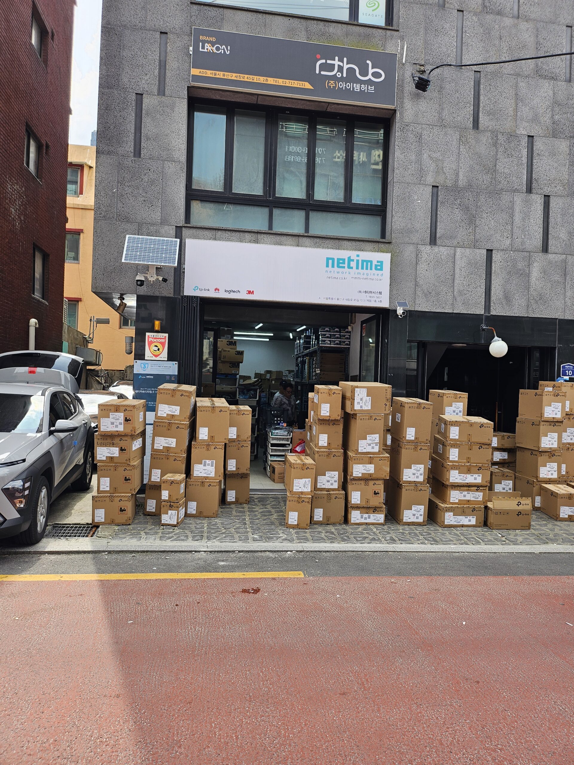 Je suis étonné de voir des piles de cartons de produits neufs stockés devant les portes des enseignes, sans surveillance particulière, à la portée de n’importe qui… le Coréen a confiance !