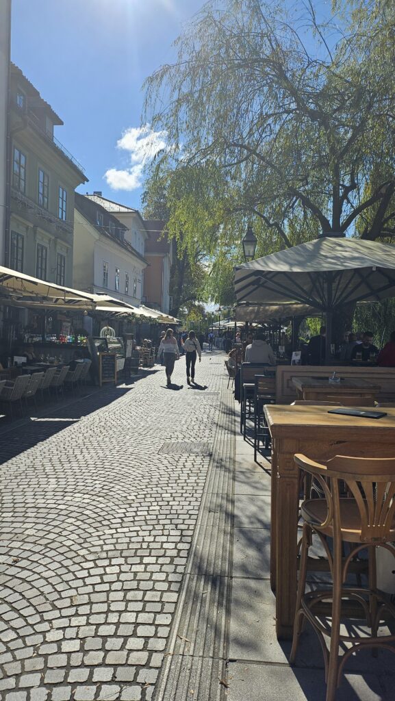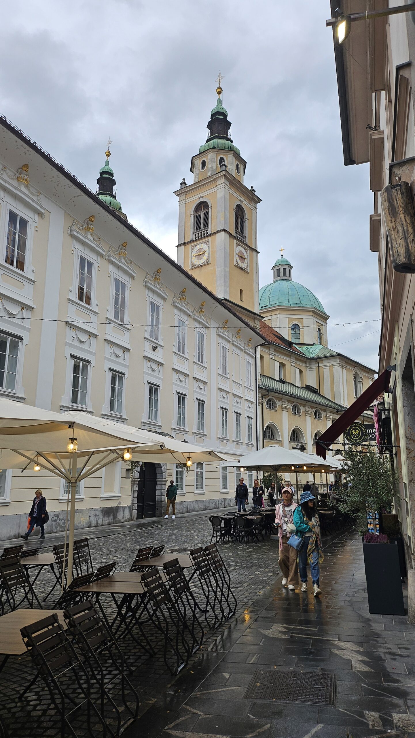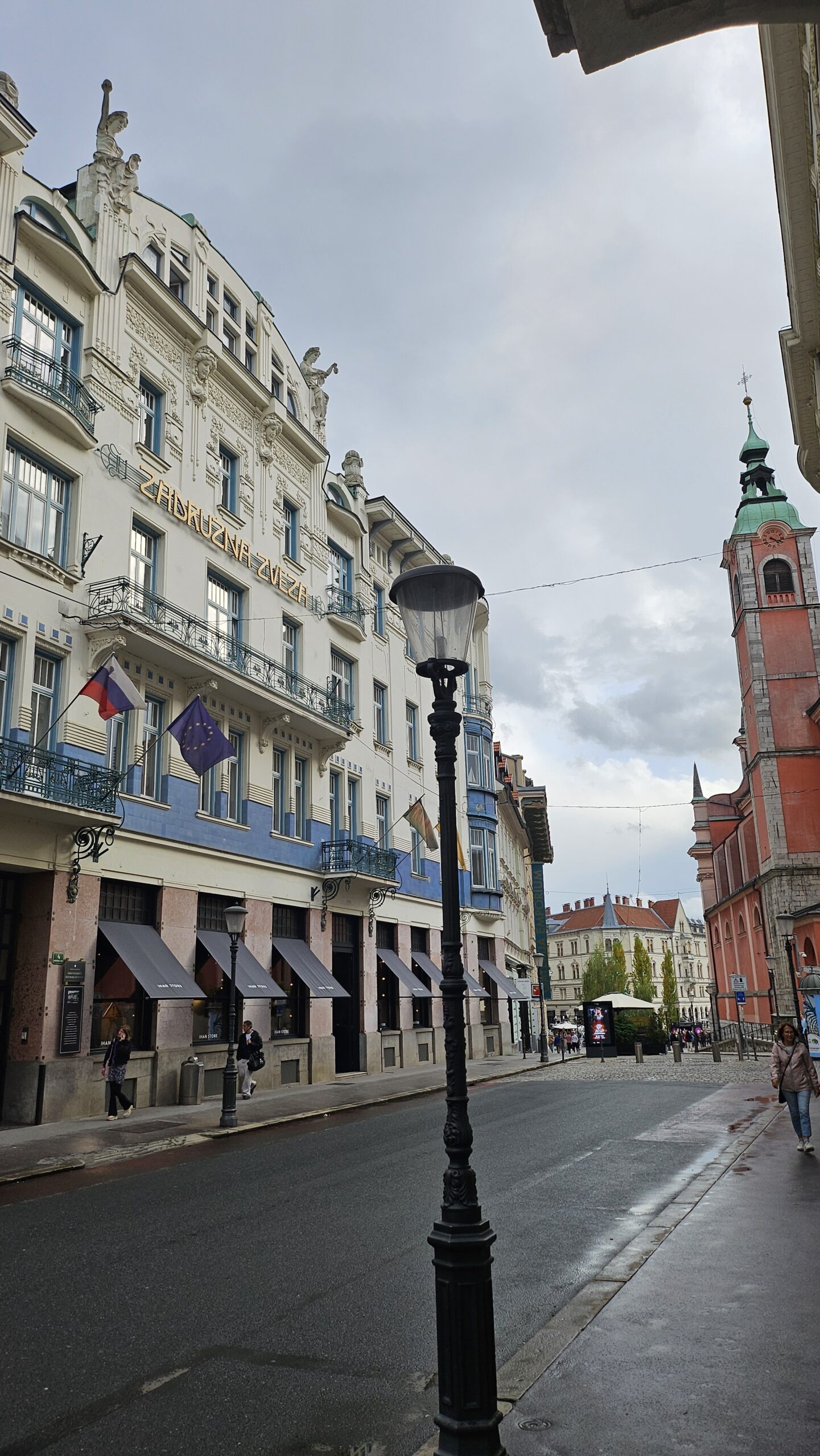 Nos premiers pas dans la vielle ville de LJUBLJANA nous font bonne impression. Pas de voiture, toutes les rues sont piétonnes.