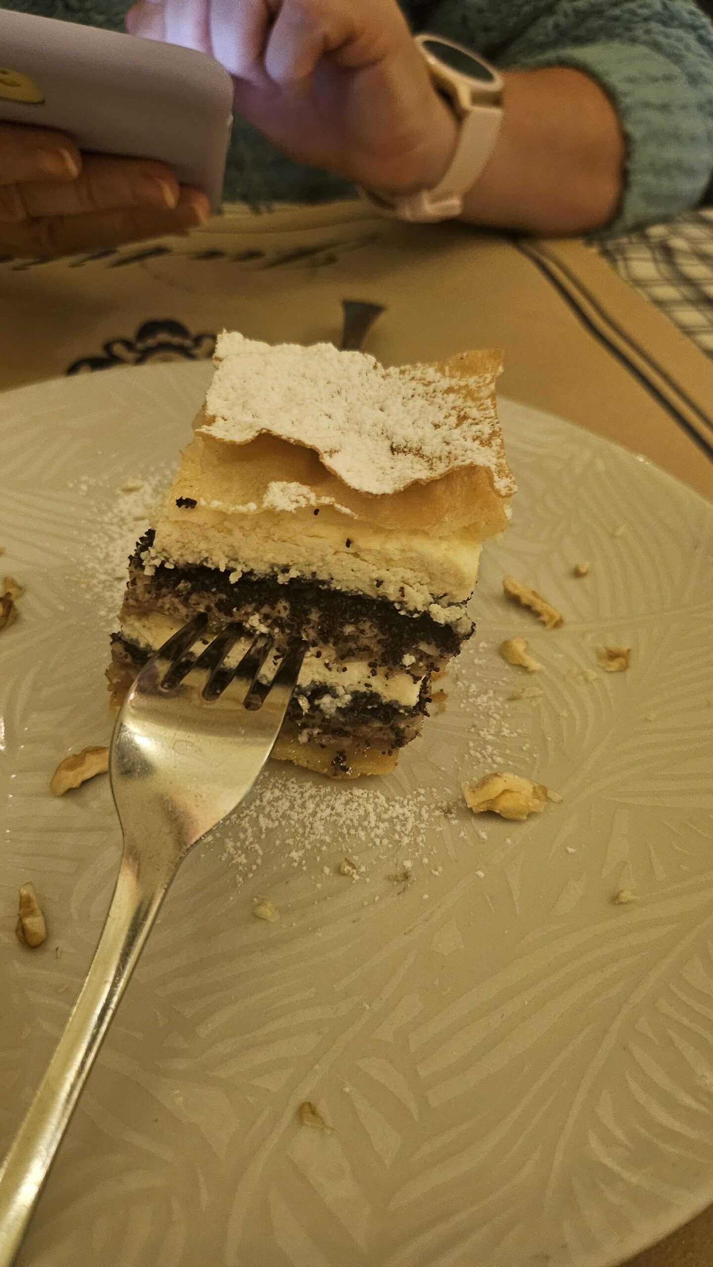 Pour terminer sur une note sucrée, nous prenons un Gibanika: Succulent dessert aux farces alternées de fromage blanc, de graines de pavot, de noix et de pommes cuites.