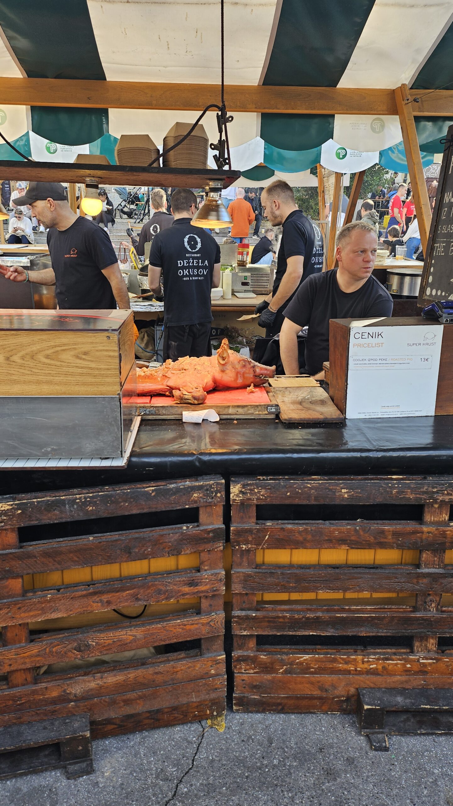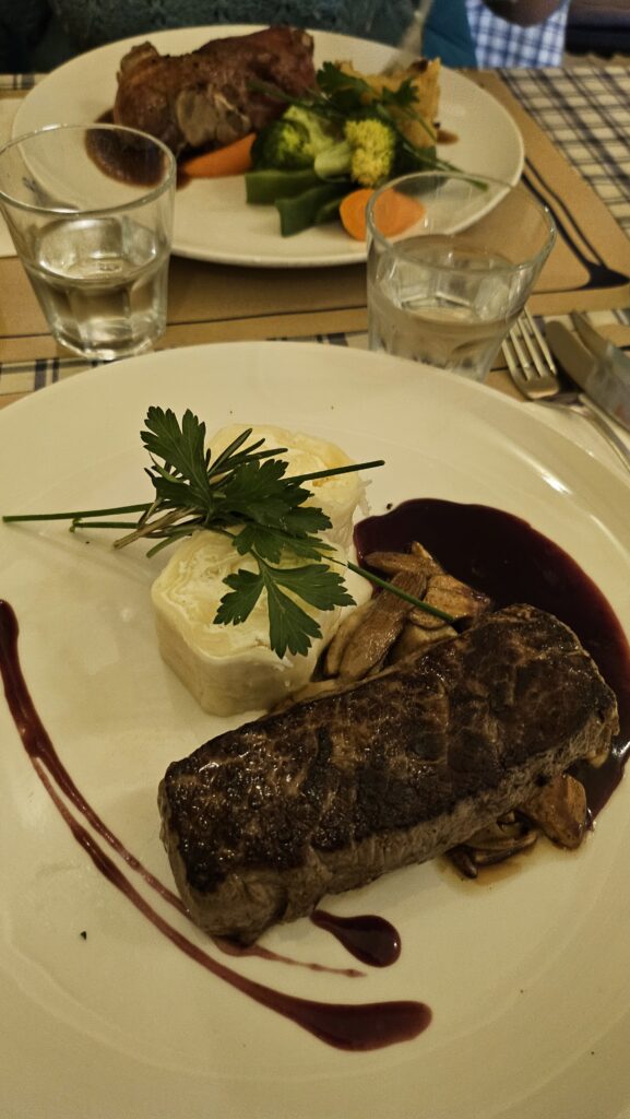 La décoration et l’ambiance mettent en avant le folklore Slovène, jusqu’aux costumes traditionnels portés par les serveurs et serveuses. Même la musique est folklorique et je dois avouer que l’accordéon qui a résonné dans mes oreilles toute la soirée m’a quelque peu agacé !