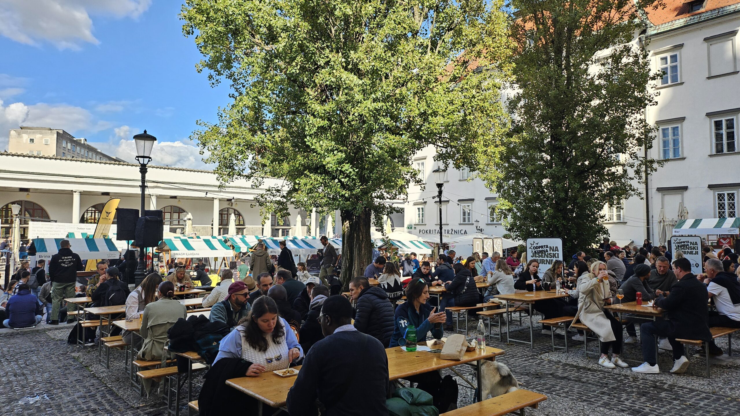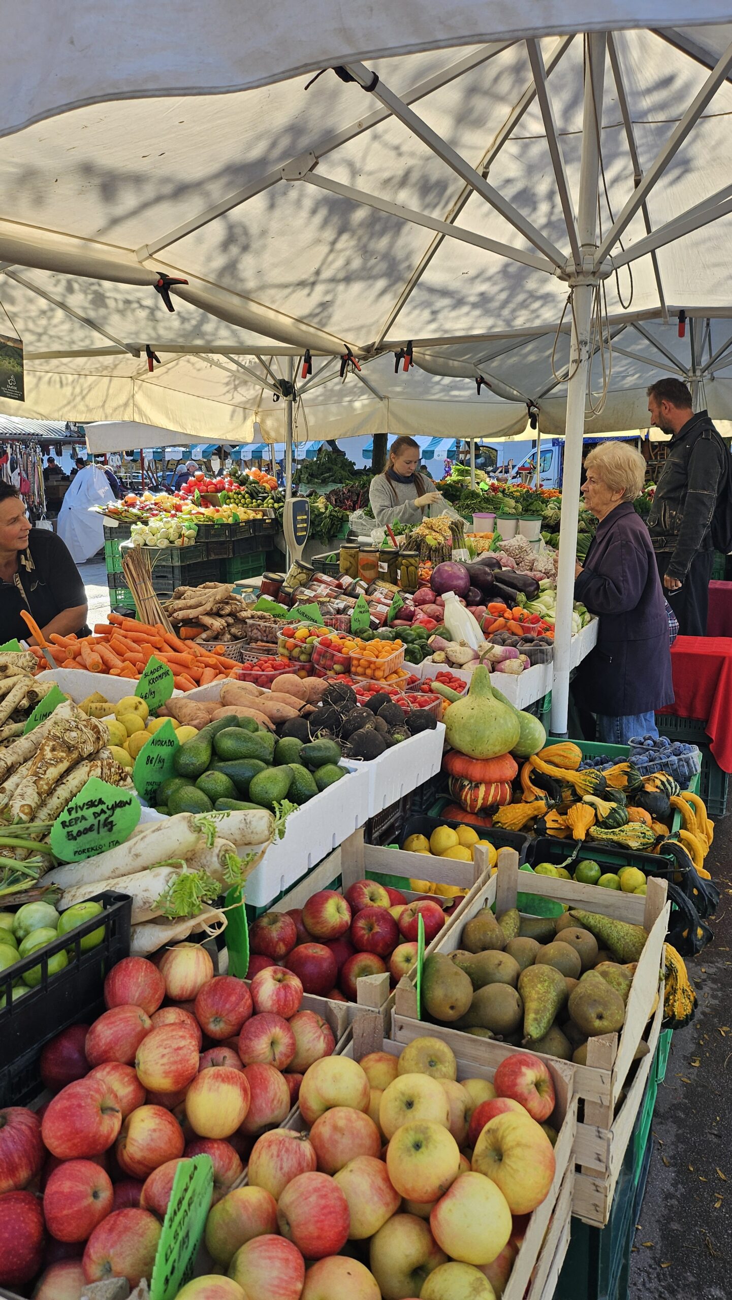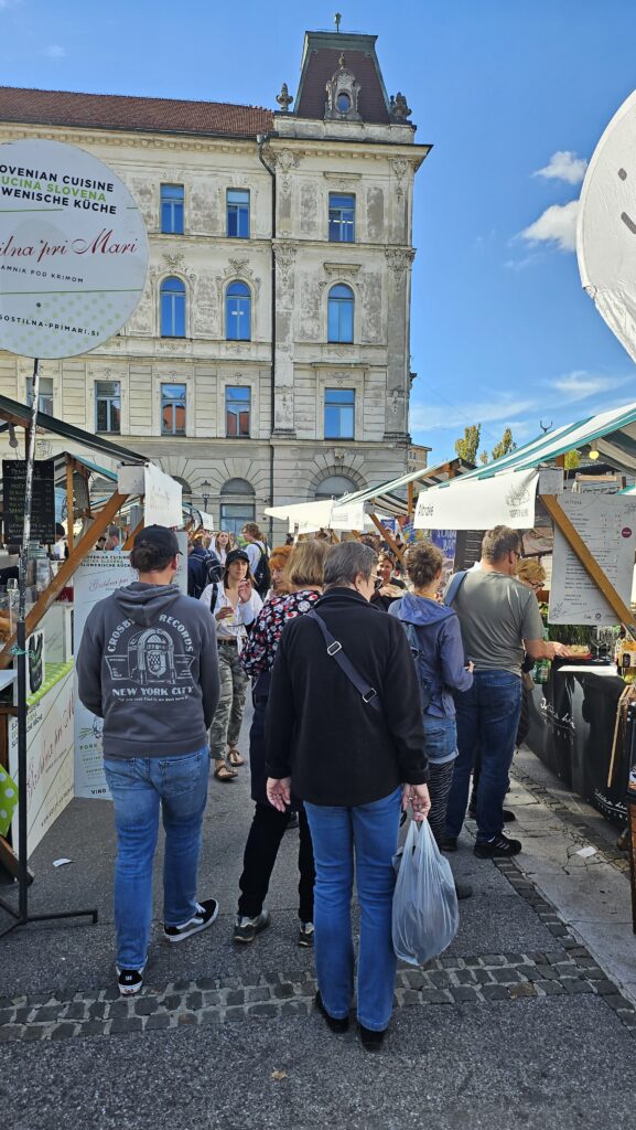 A l’extérieur, on découvre les étales de dizaines de maraichers venus de tous les coins de Slovénie pour proposer leurs magnifiques fruits et légumes de saison.