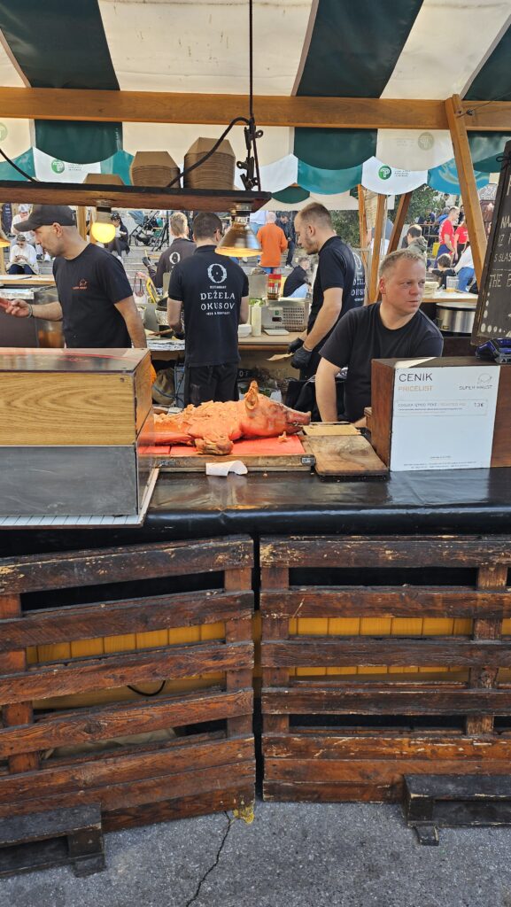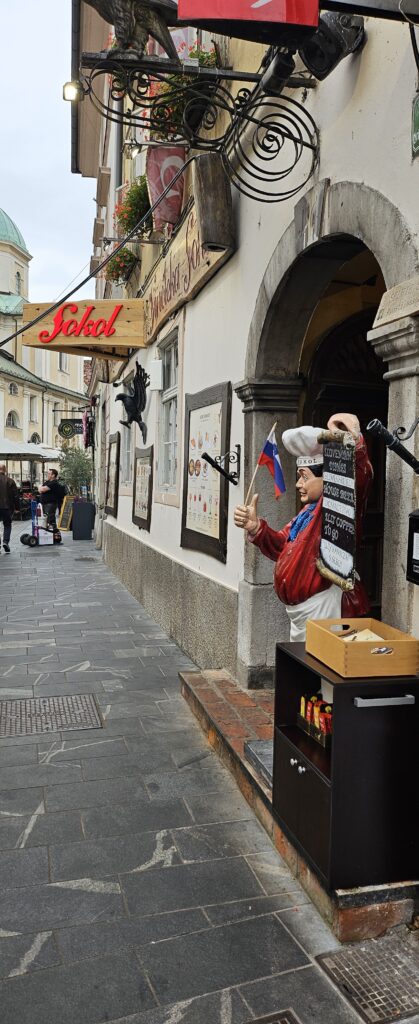 Après cette découverte culinaire des spécialités Slovènes, nous continuons notre ballade dans les rues de la ville. Pas de voiture, c’est calme. Les boutiques artisanales sont mises en valeur et donnent envie de rentrer. Le » made in Slovenia » est mis en avant.