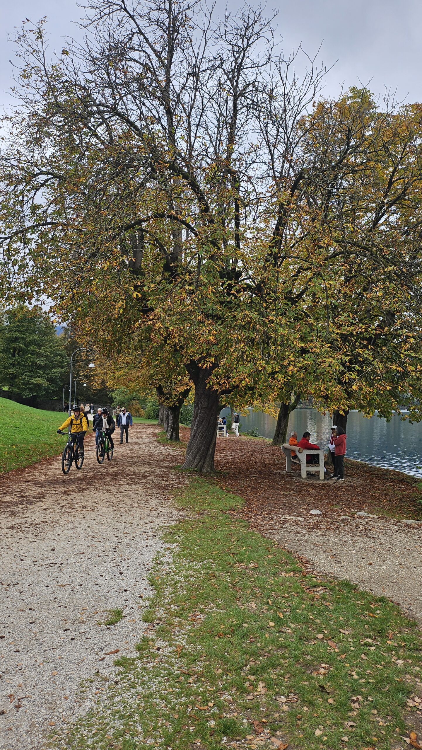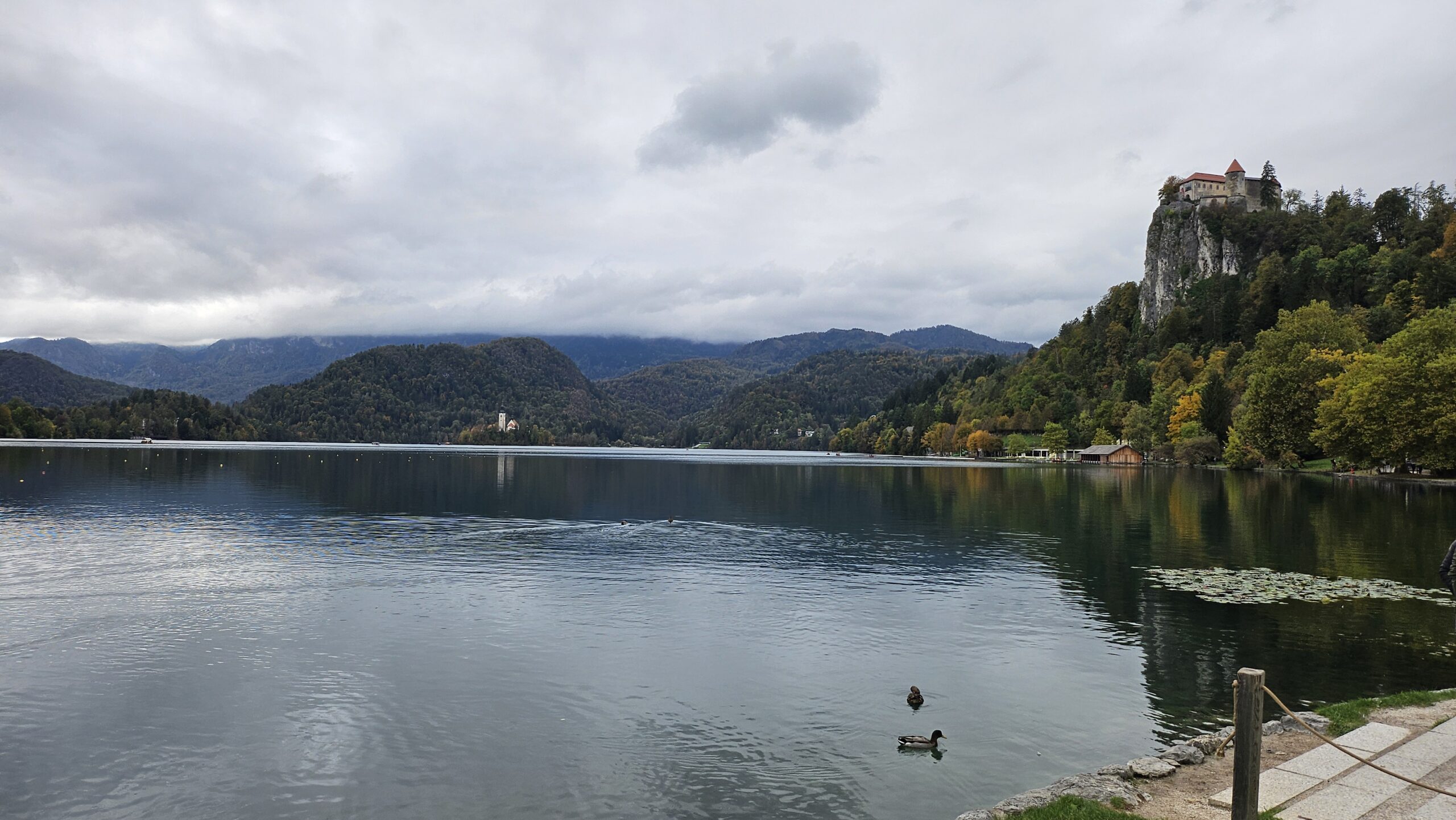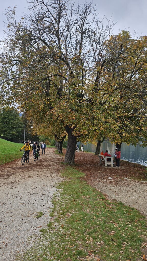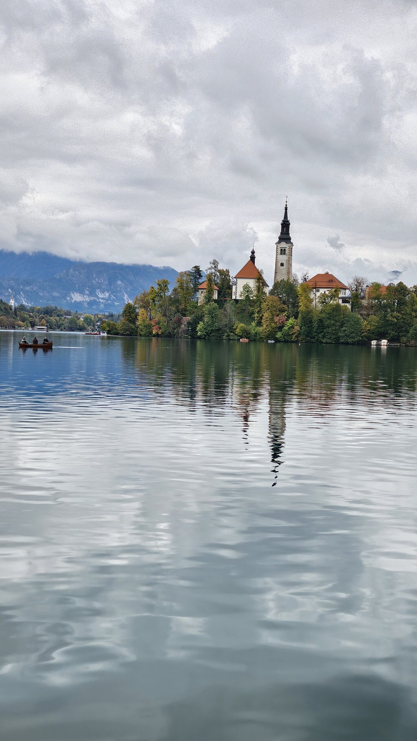 Ce tour du lac à pied permet de passer un moment paisible et agréable. En marchant, on admire la petite île et l’église sous toutes les coutures. L’angle de vue change en permanence. Les couleurs automnales sont superbes. Il manque juste un peu de soleil pour sublimer les paysages.