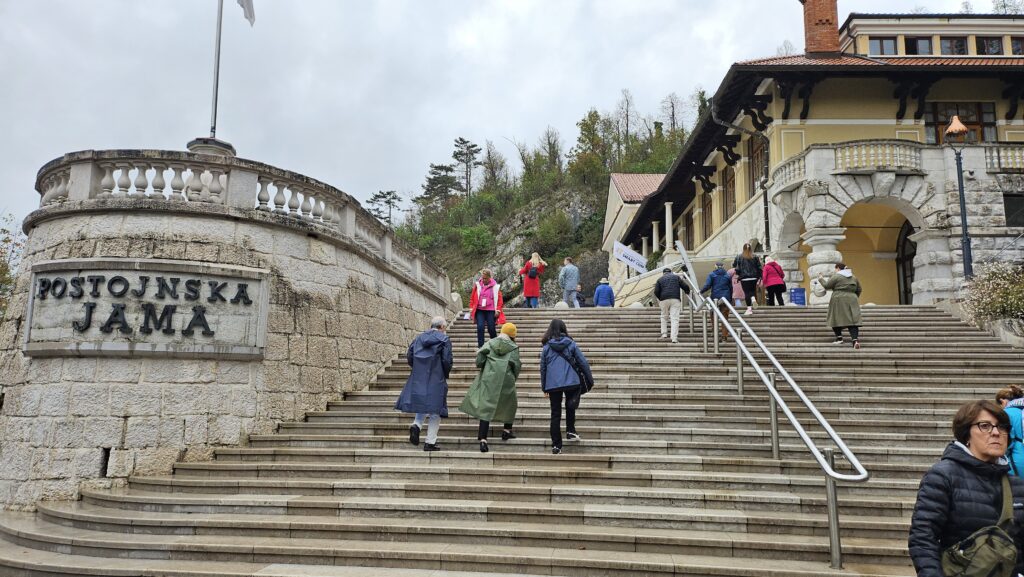 Le bus arrive à la gare routière de Postojna vers 10h40. De là, 20 mn à pied sont nécessaires pour rejoindre l’entrée de la grotte.
