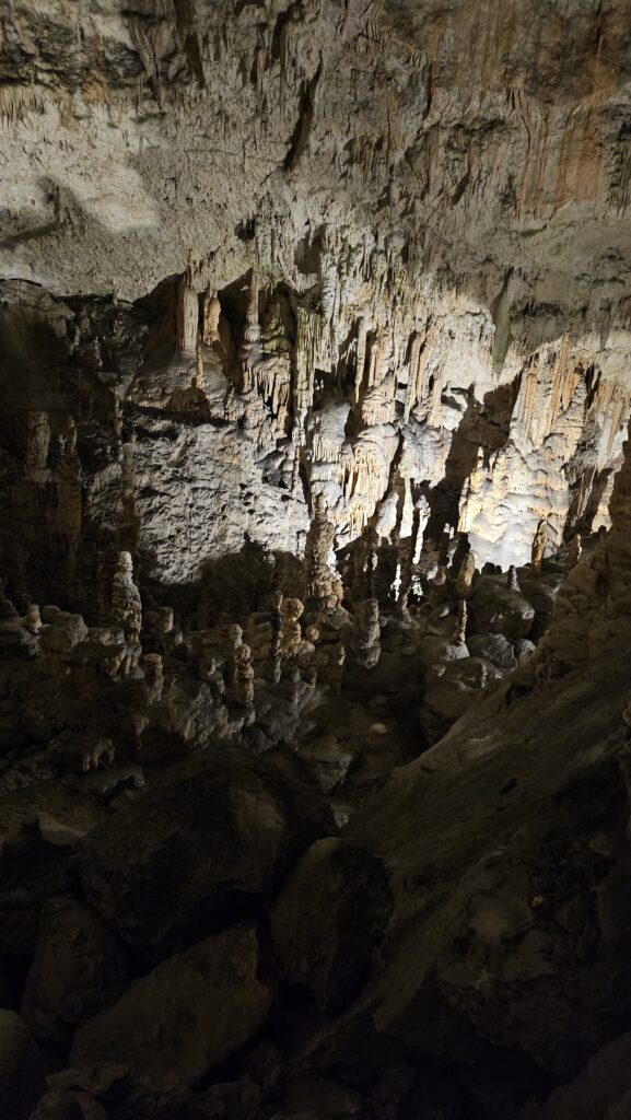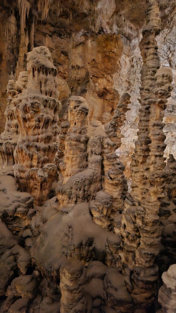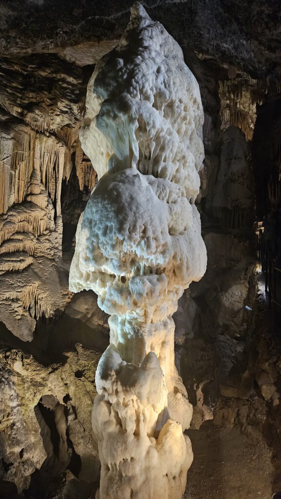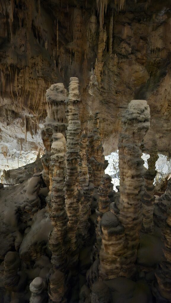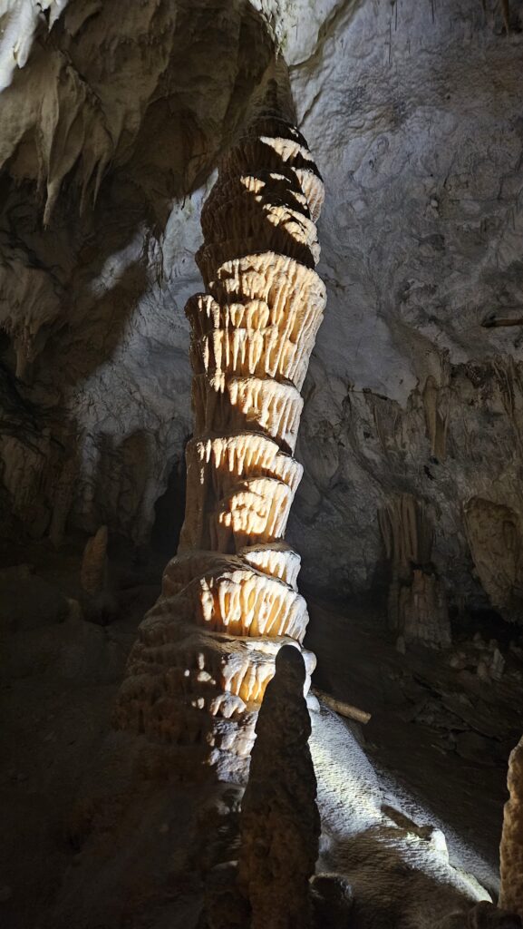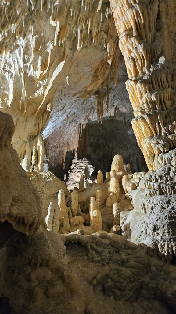 Nous parcourons 1.5 km de galeries, sur des chemins sécurisés en béton antidérapant et facilement accessibles. L’ambiance est féérique. Les décors sont majestueux. Je suis fasciné par ce que la nature est capable de faire, des édifices artistiques, construits par de minuscules gouttes d’eau pendant des millions d’années.